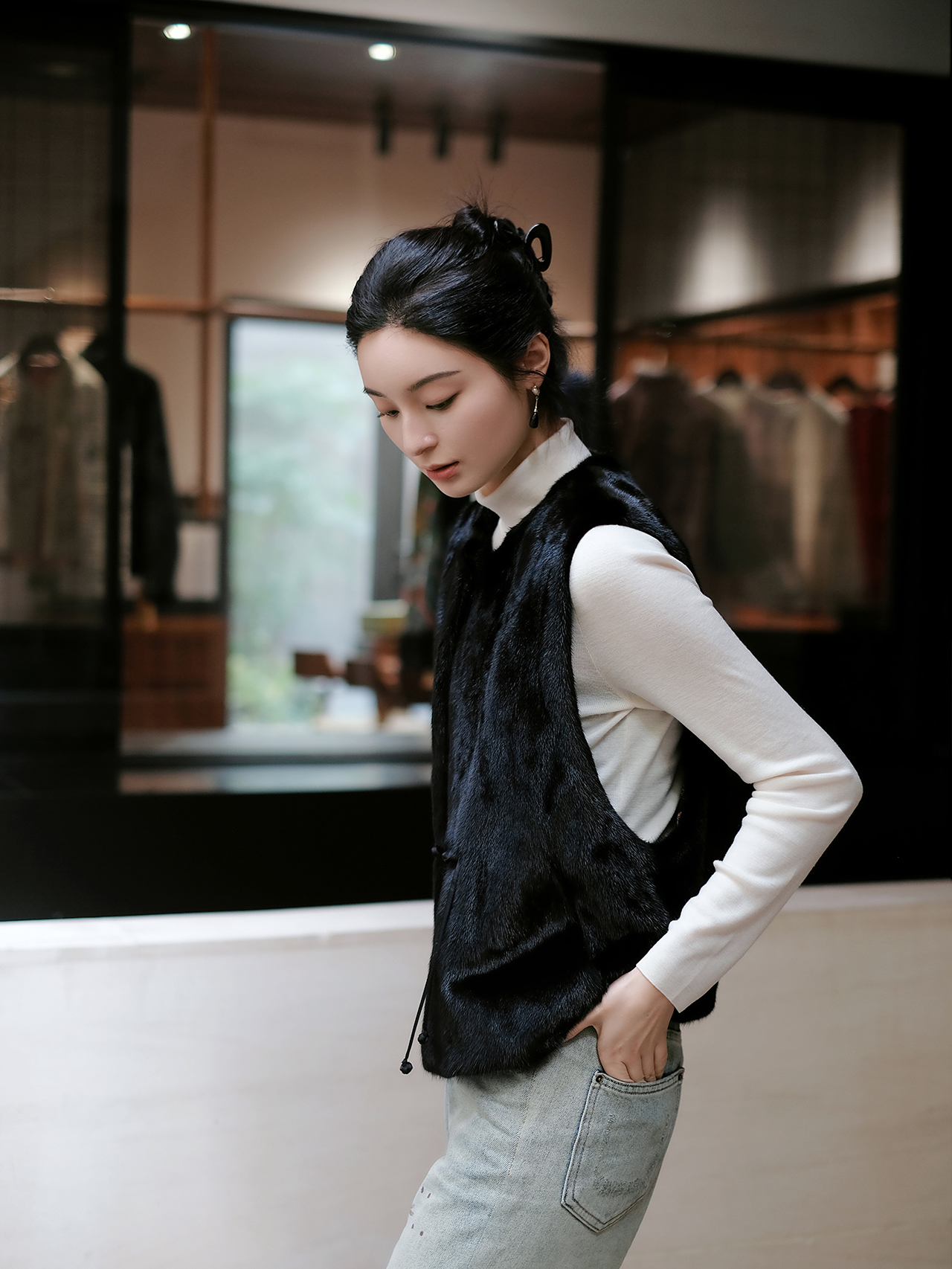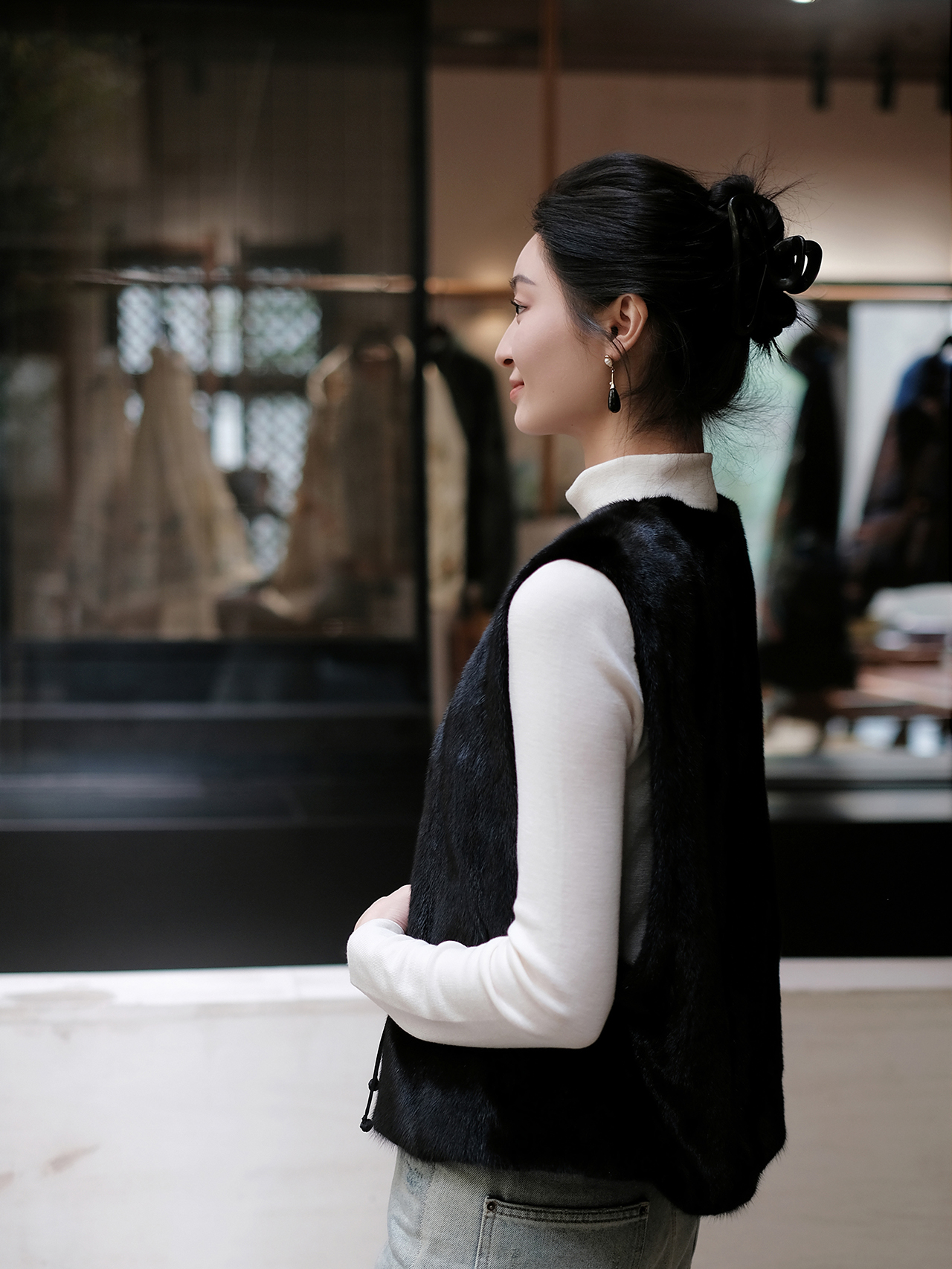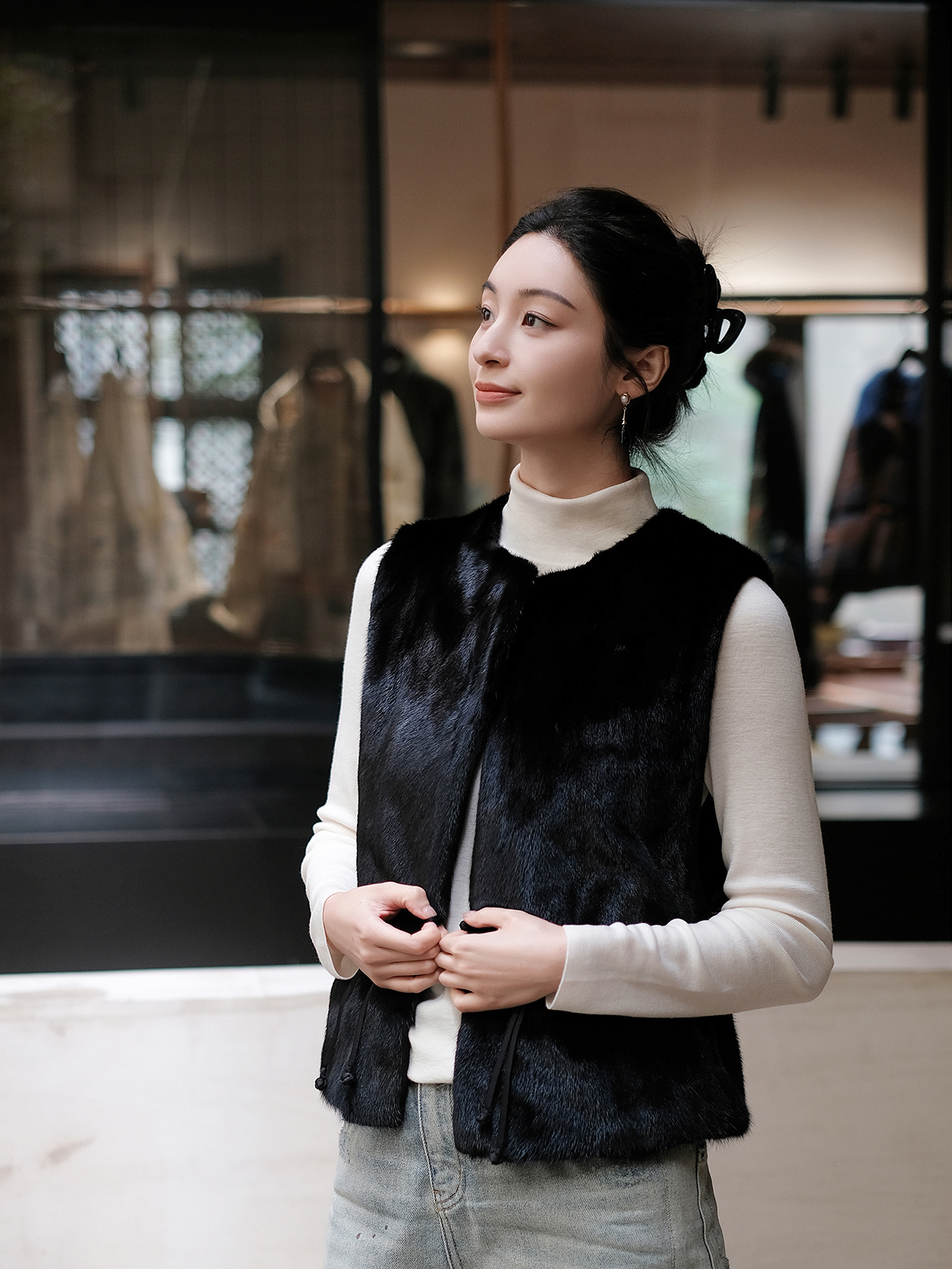盛唐婧 | 新中式进口水貂盘扣马甲-黑色