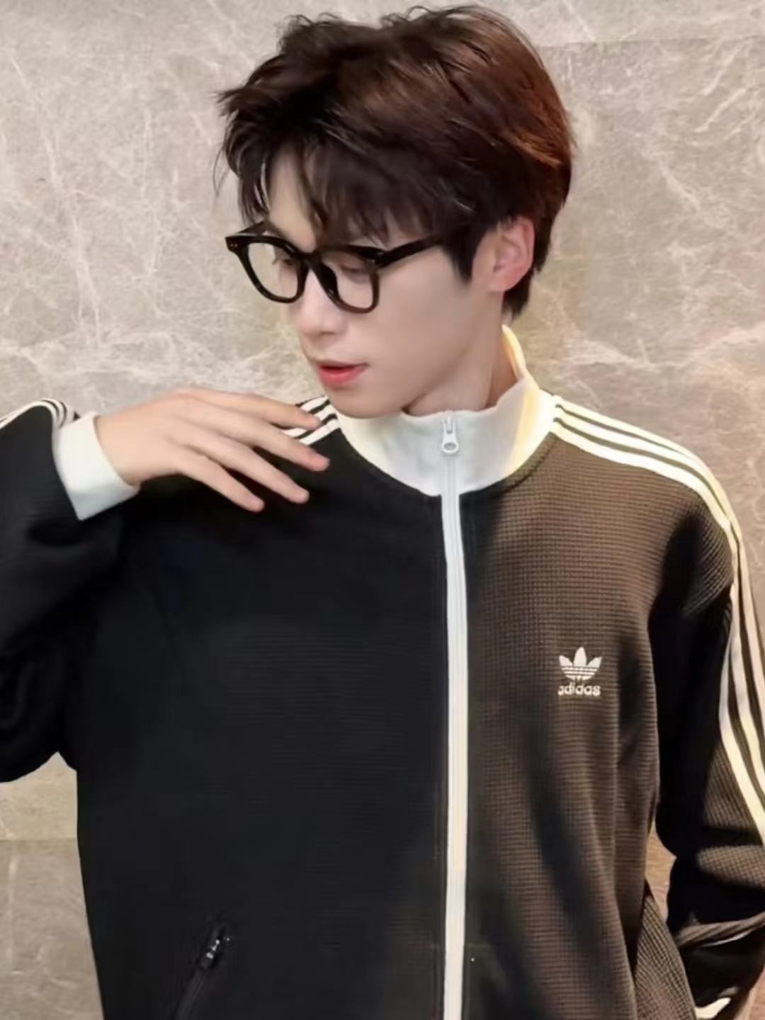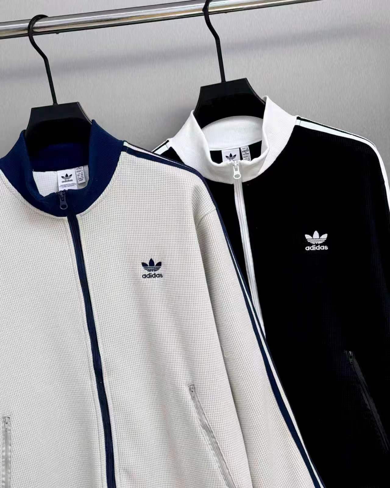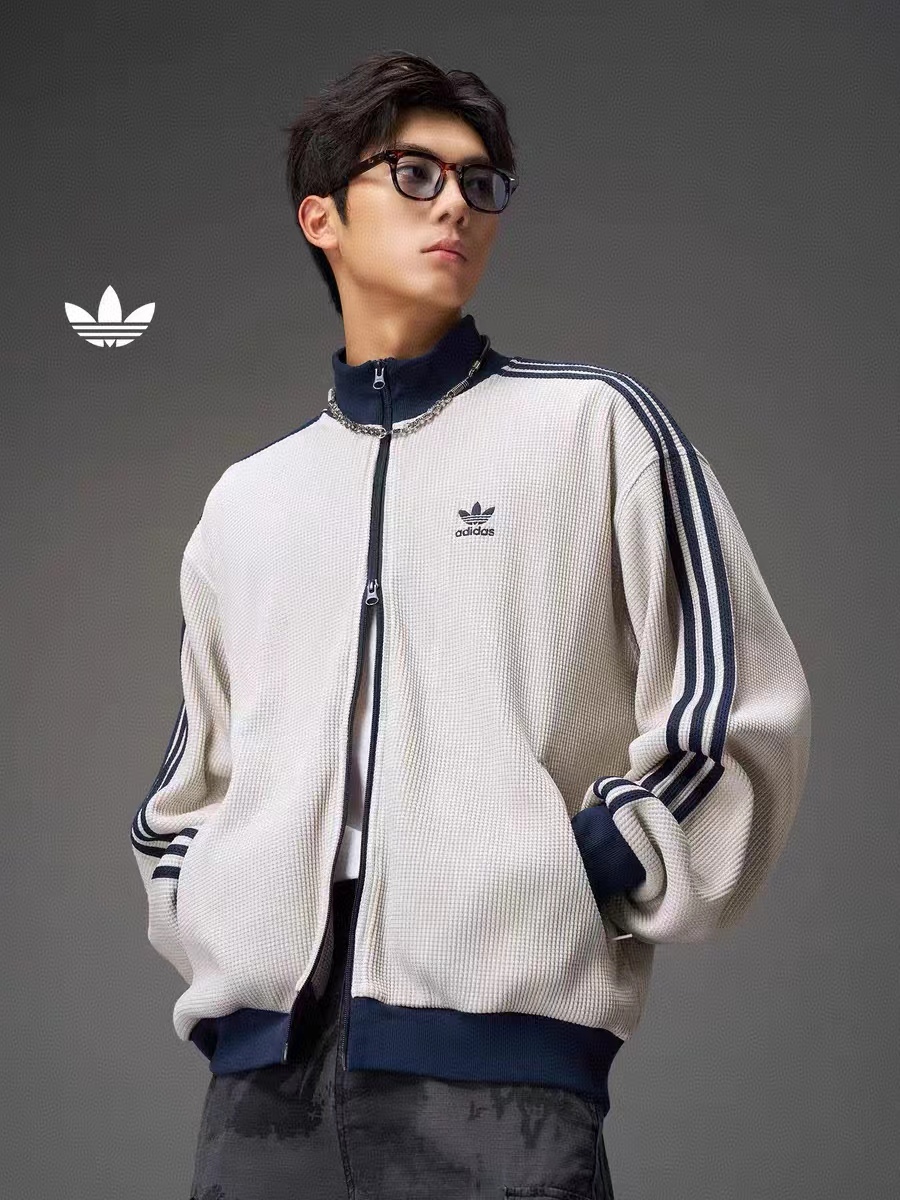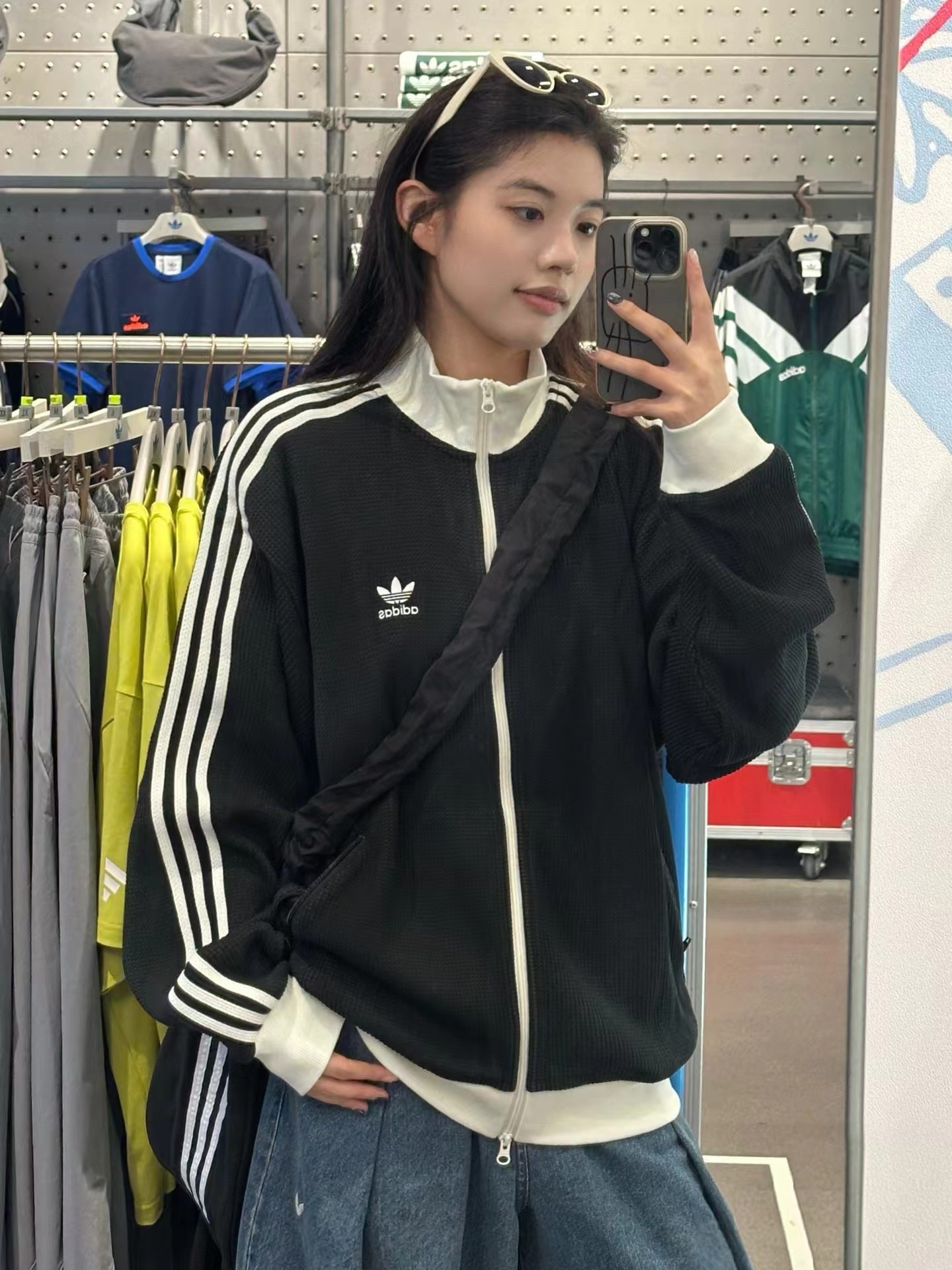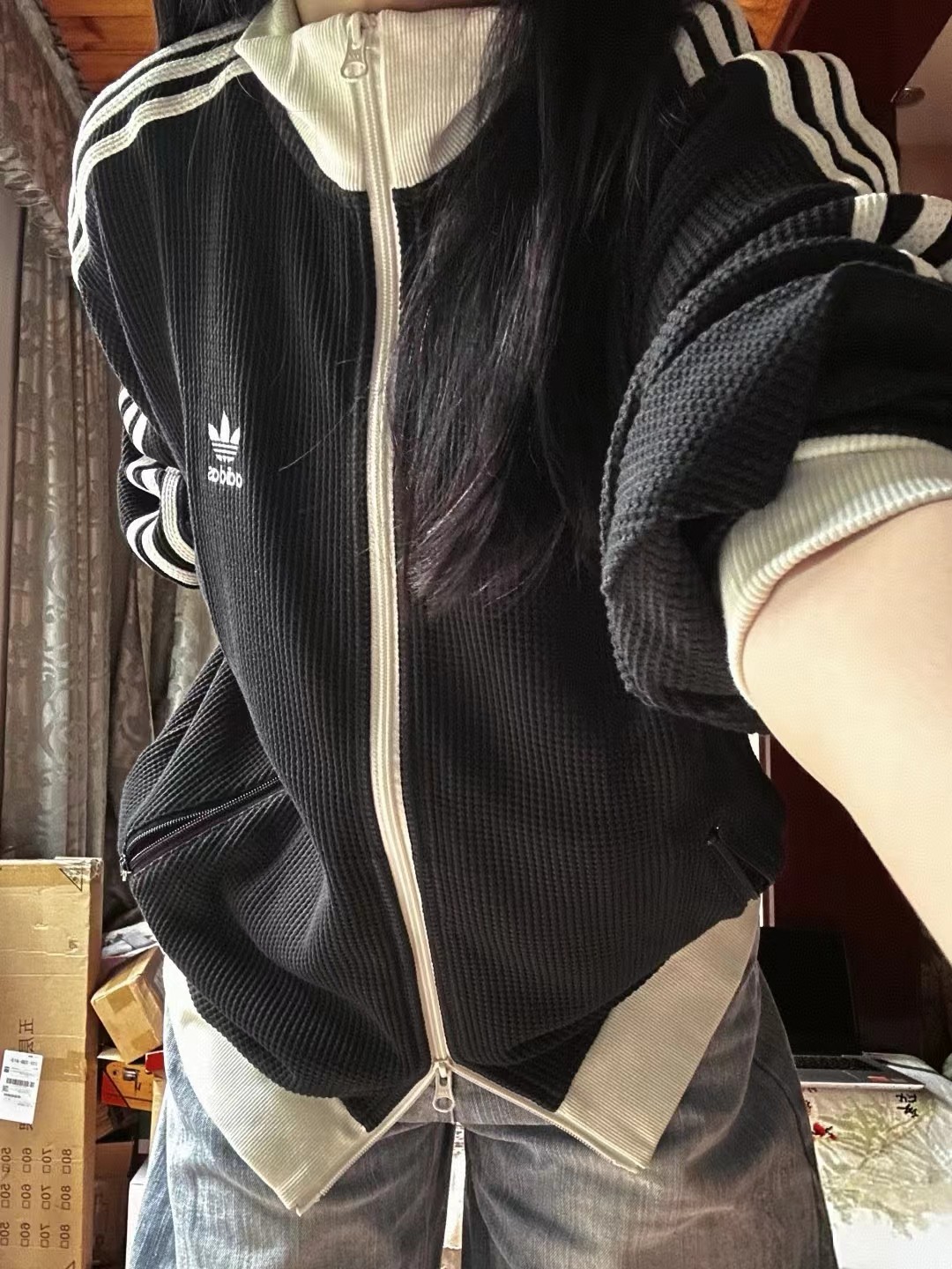 男女同款针织华夫格立领运动宽松夹克外套,华夫格420克复合面料! 同款提花记忆面料硬度适中 上身挺括不拖拉 初秋外穿 男女同款 情侣款 百搭 冬季内搭都适合 精典三杠条纹 定制YKK双开拉链