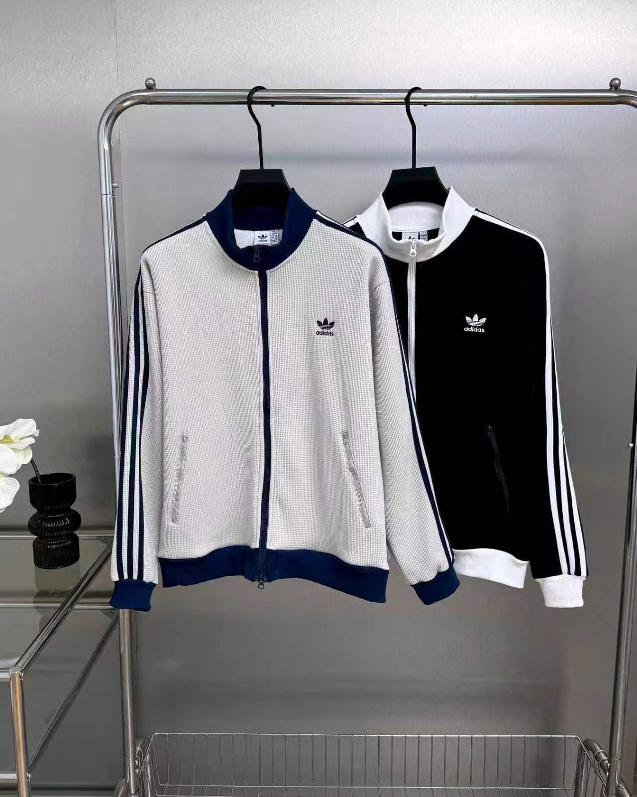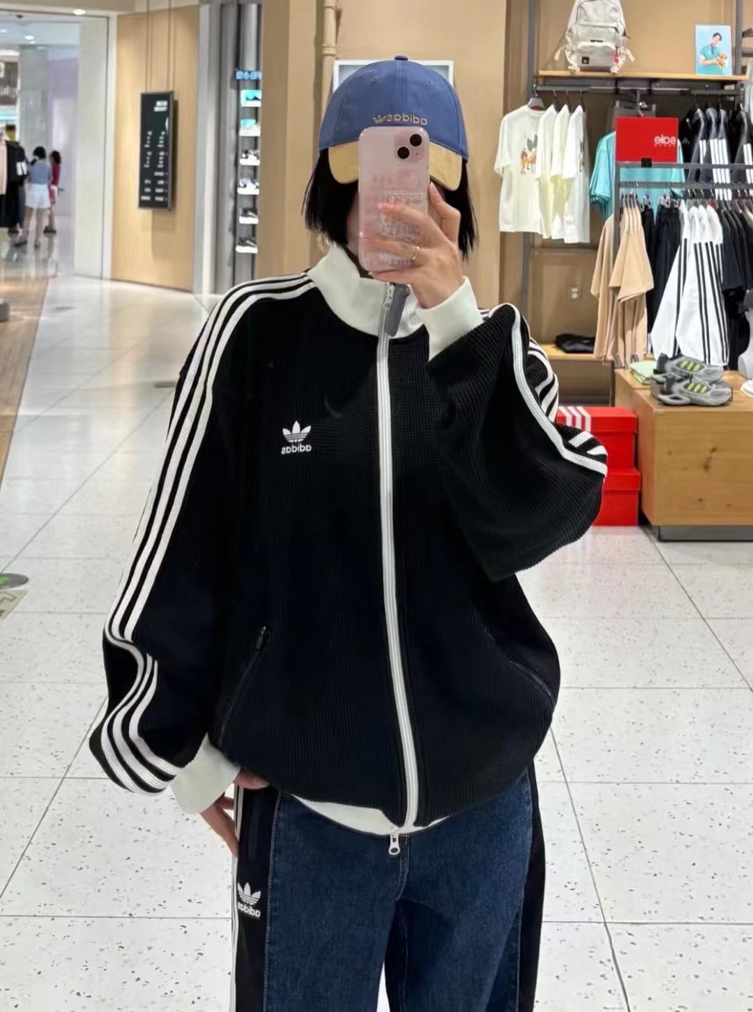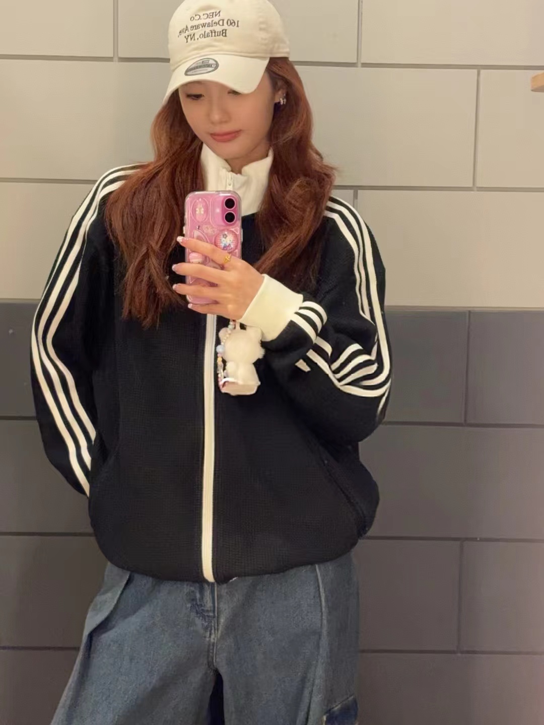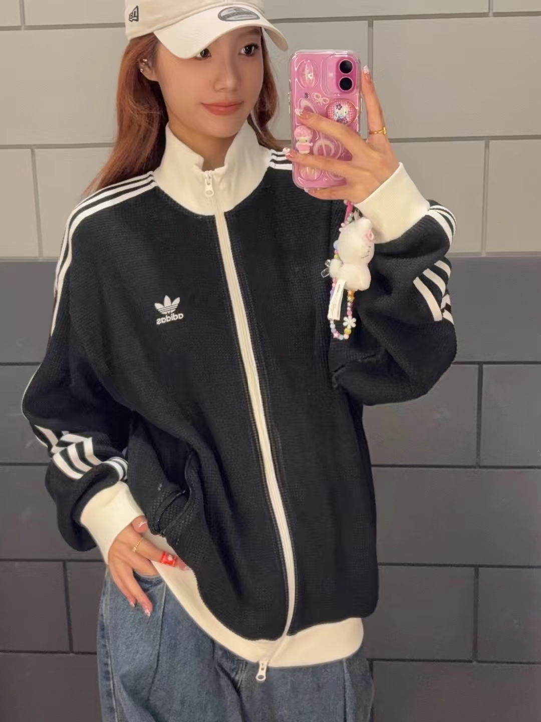 男女同款针织华夫格立领运动宽松夹克外套,华夫格420克复合面料! 同款提花记忆面料硬度适中 上身挺括不拖拉 初秋外穿 男女同款 情侣款 百搭 冬季内搭都适合 精典三杠条纹 定制YKK双开拉链