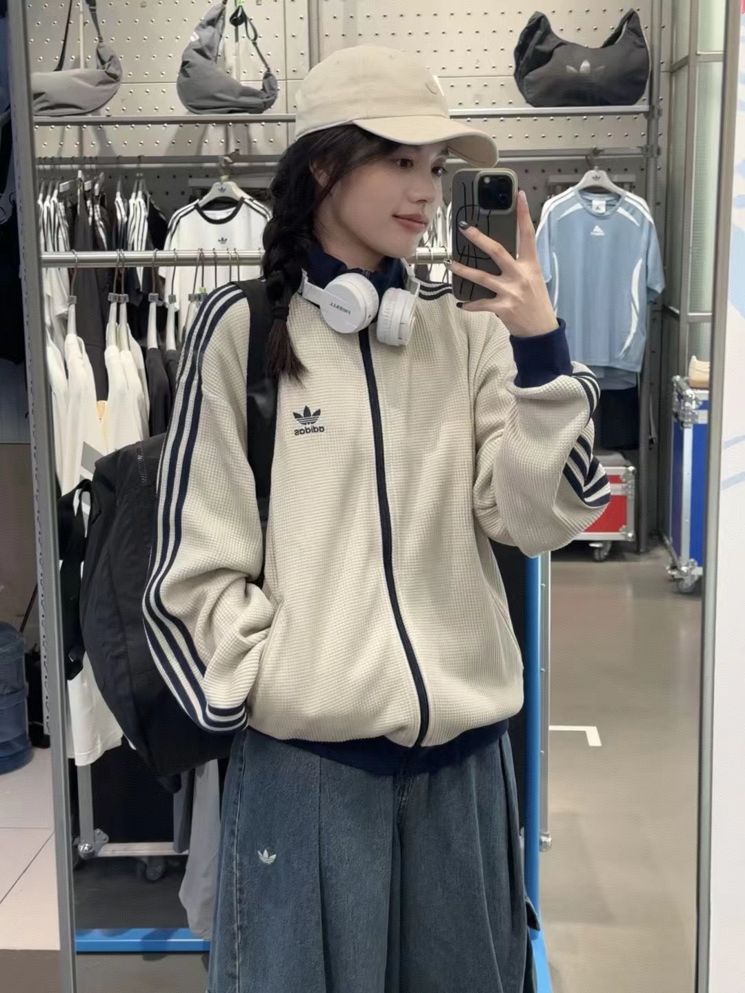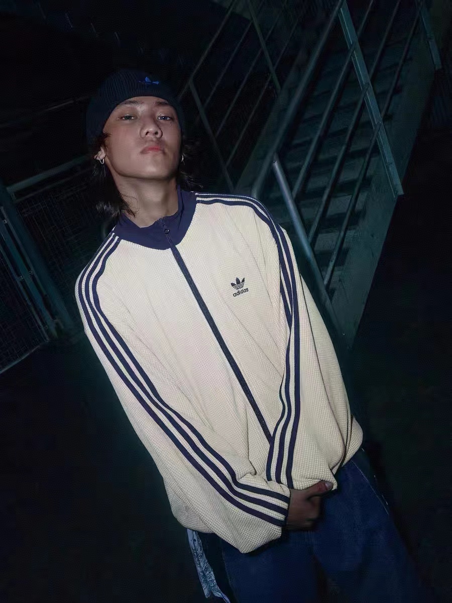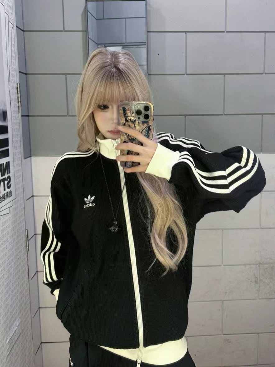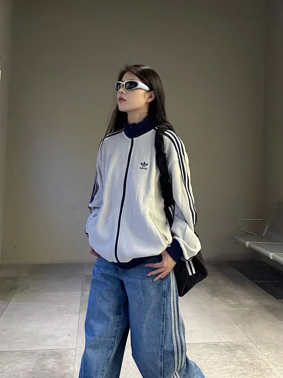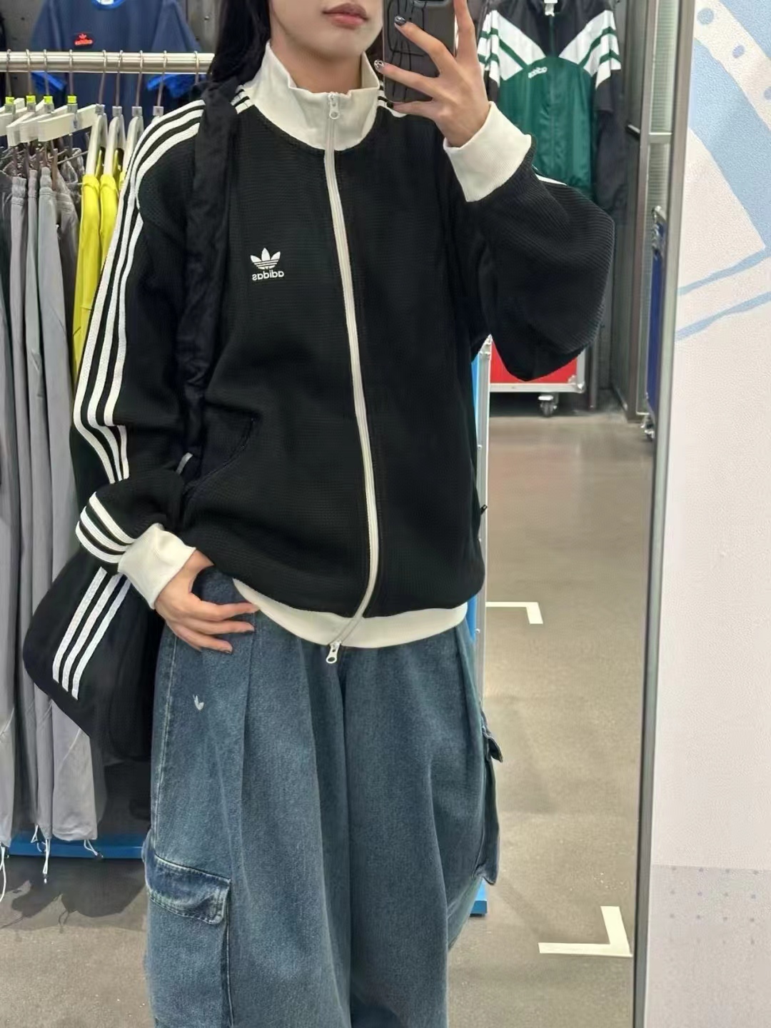 男女同款针织华夫格立领运动宽松夹克外套,华夫格420克复合面料! 同款提花记忆面料硬度适中 上身挺括不拖拉 初秋外穿 男女同款 情侣款 百搭 冬季内搭都适合 精典三杠条纹 定制YKK双开拉链