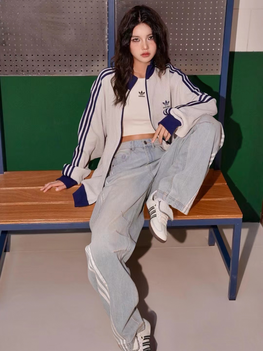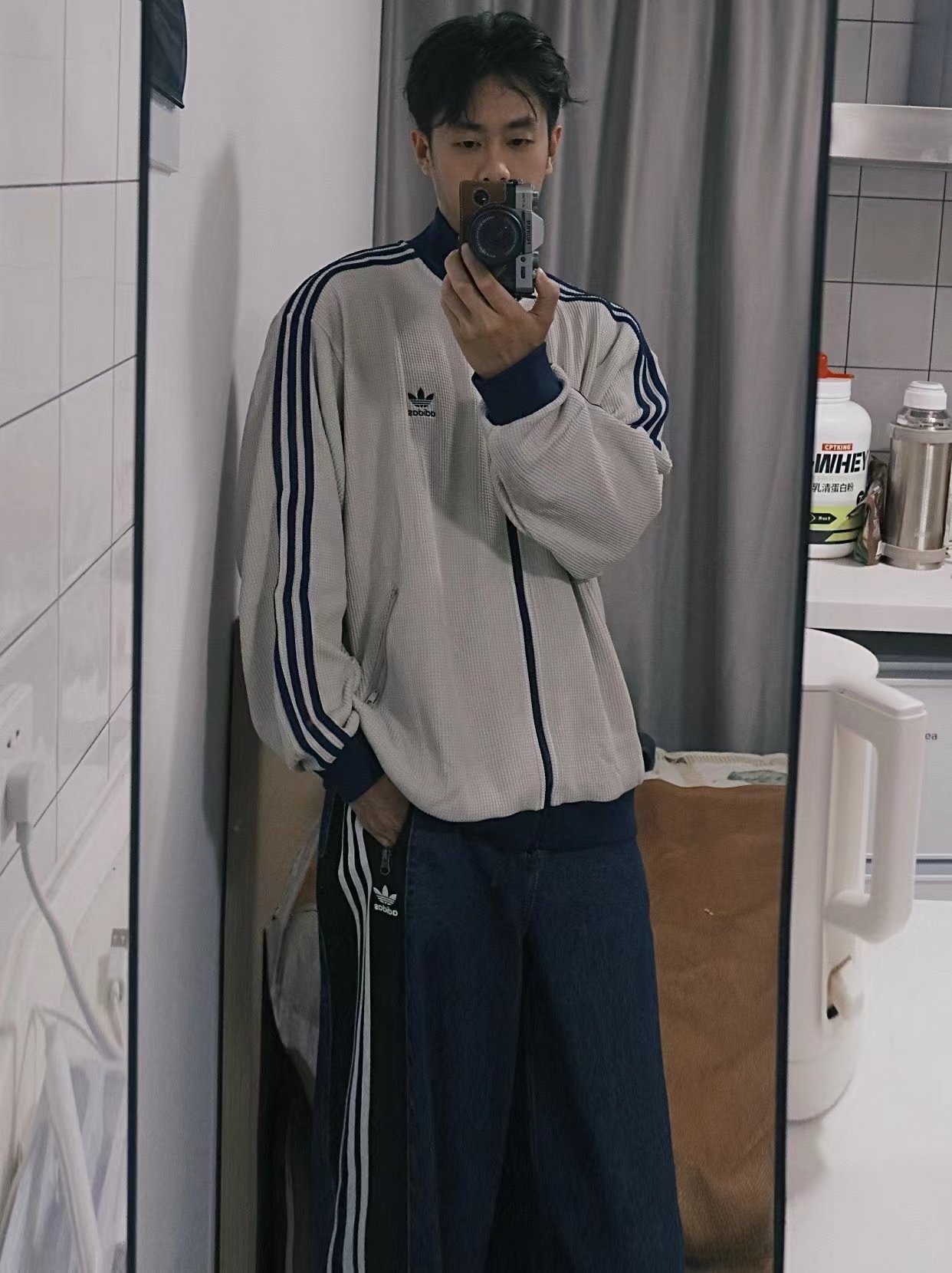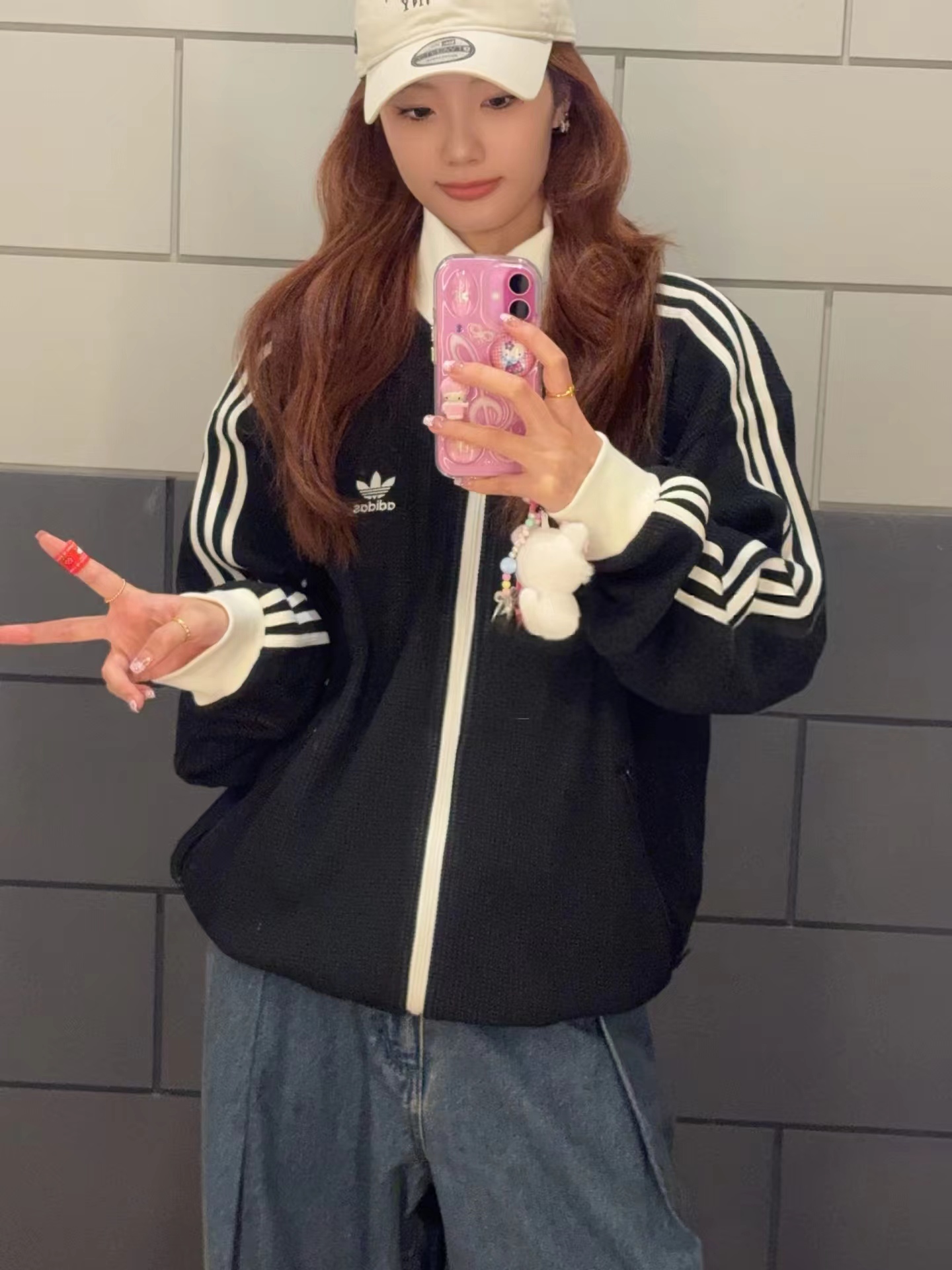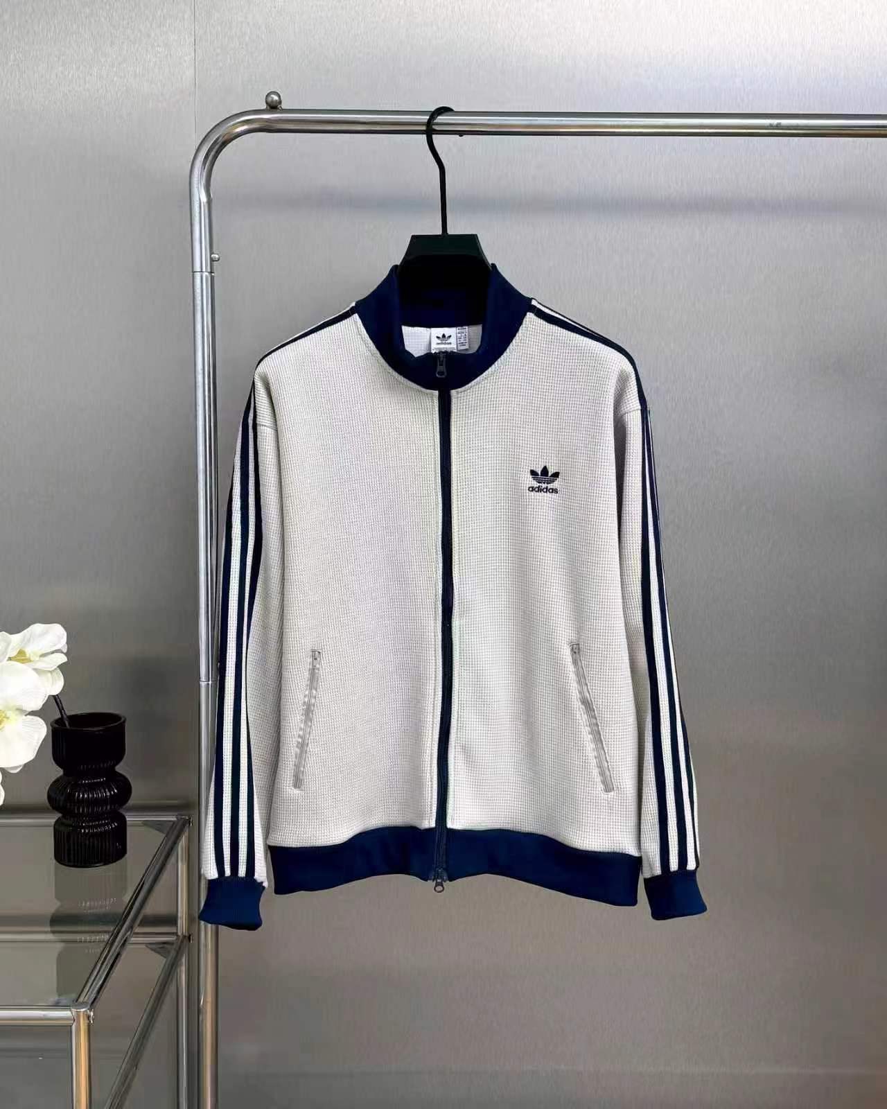 男女同款针织华夫格立领运动宽松夹克外套,华夫格420克复合面料! 同款提花记忆面料硬度适中 上身挺括不拖拉 初秋外穿 男女同款 情侣款 百搭 冬季内搭都适合 精典三杠条纹 定制YKK双开拉链