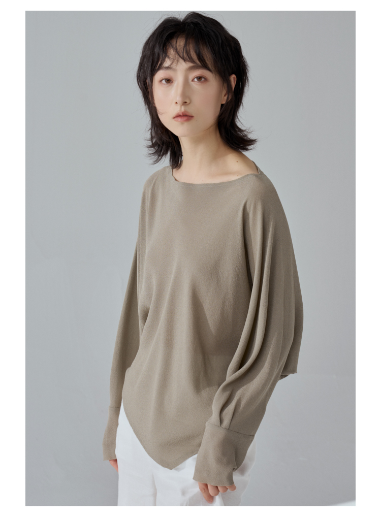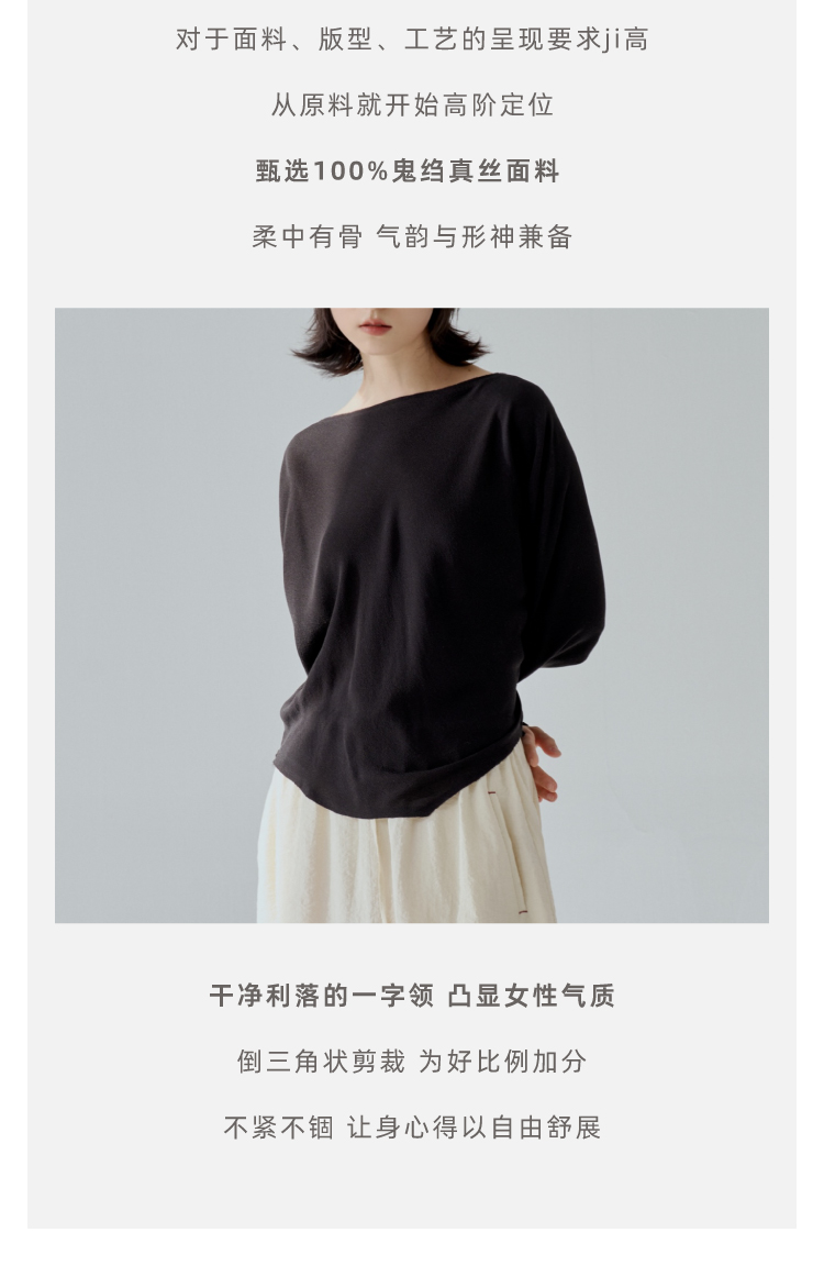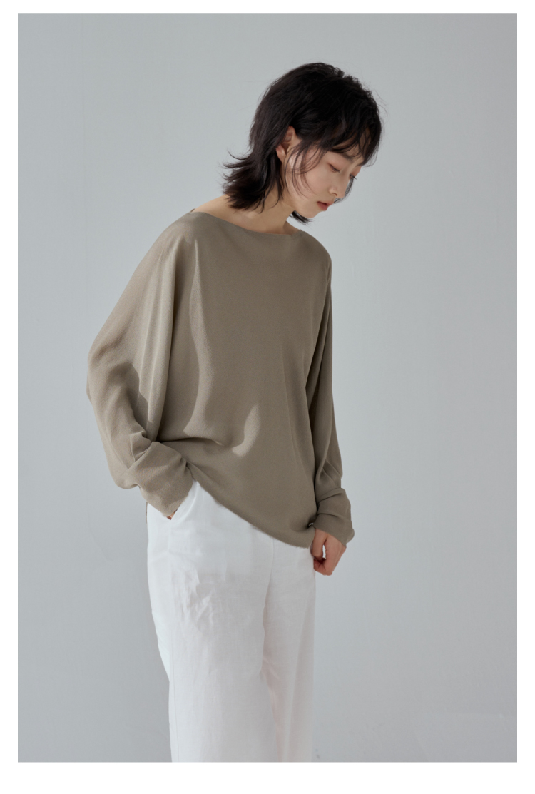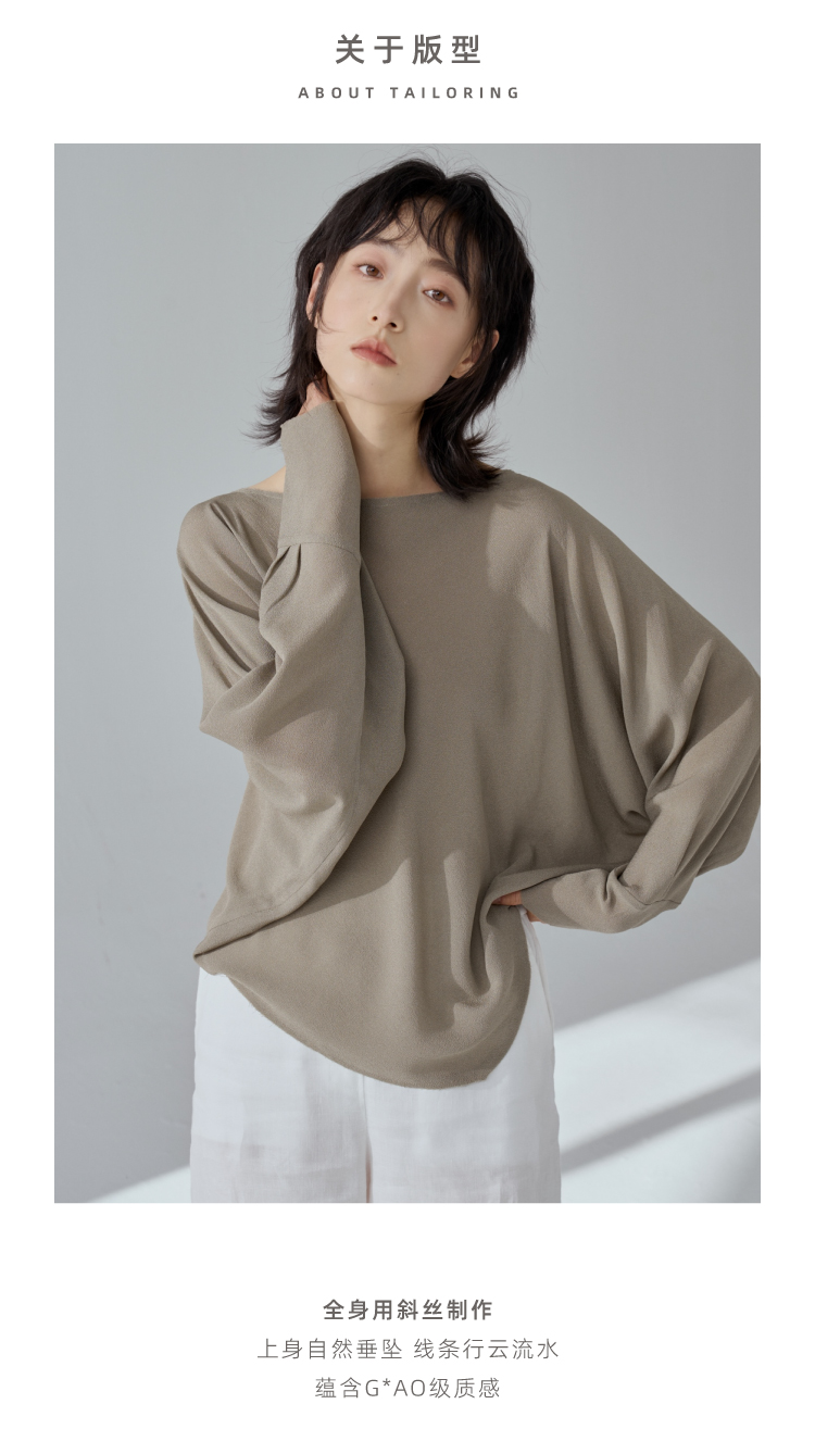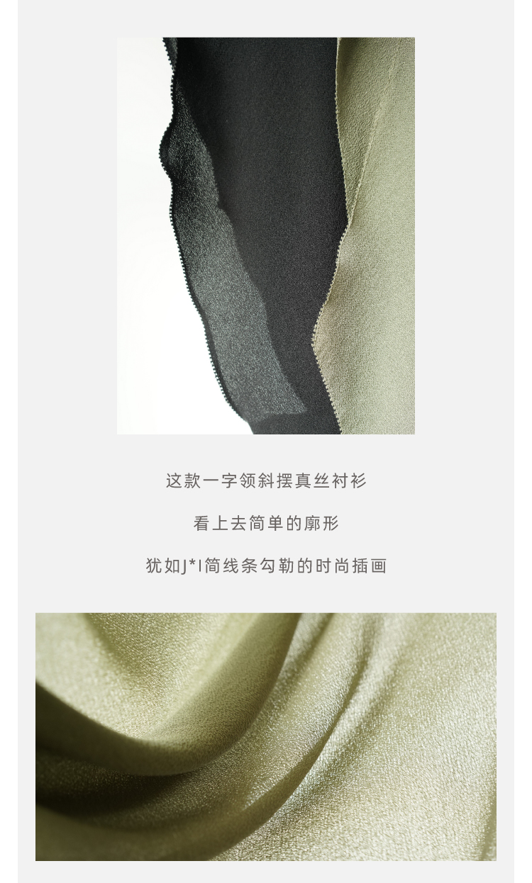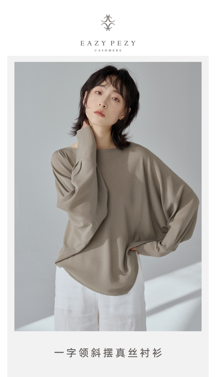 一字领斜摆真丝衬衫