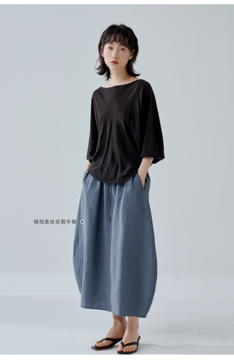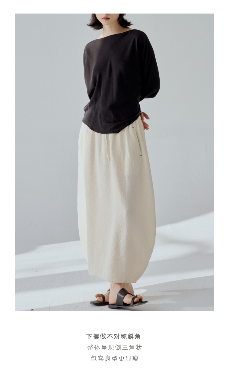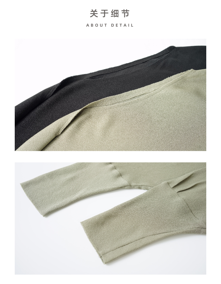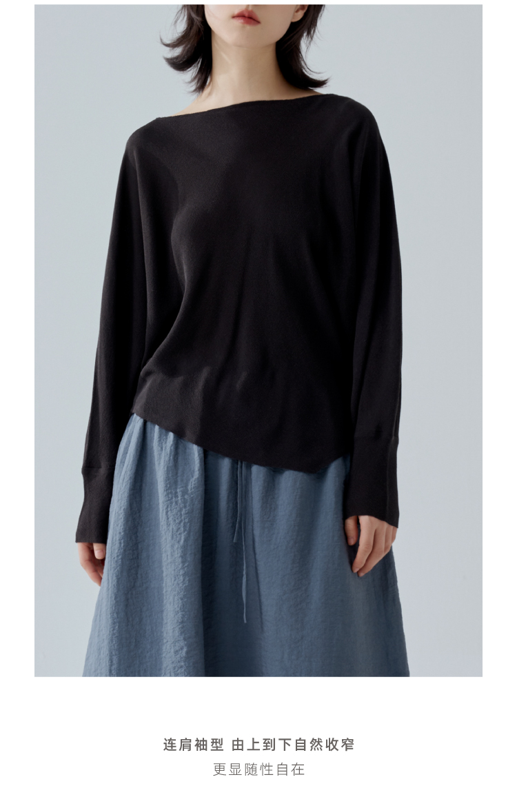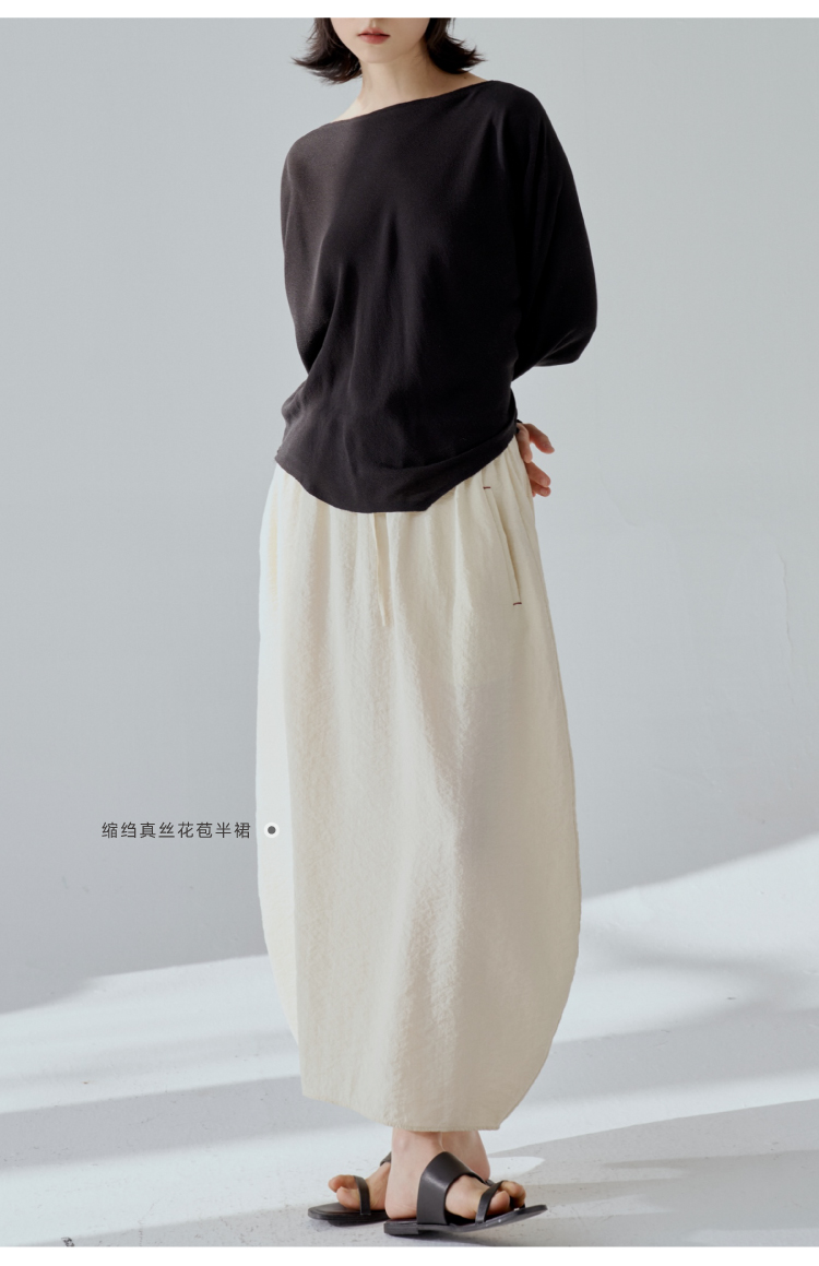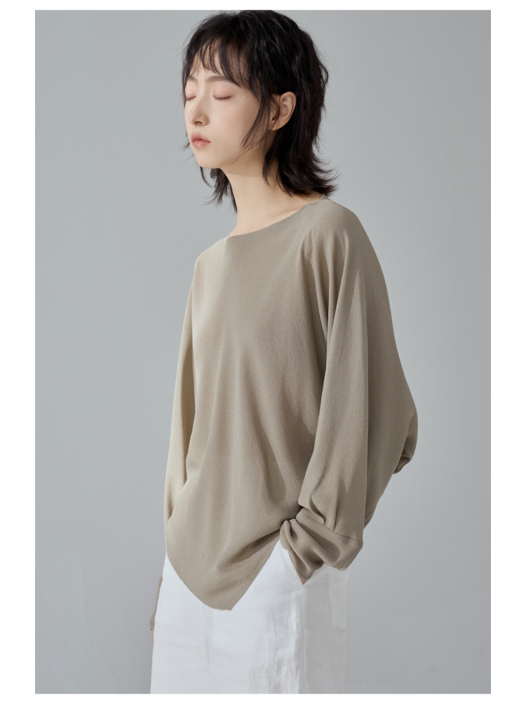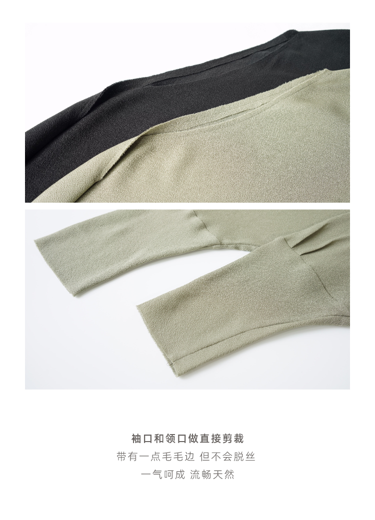 一字领斜摆真丝衬衫