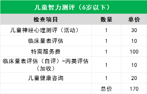 儿童智力测评6岁以下 不含挂号费(每周五儿童保健门诊检查)