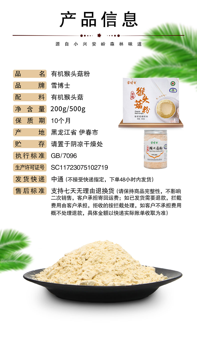 【厂商直发】东北有机猴头菇粉菌菇破壁粉营养养胃早餐代餐冲饮包邮