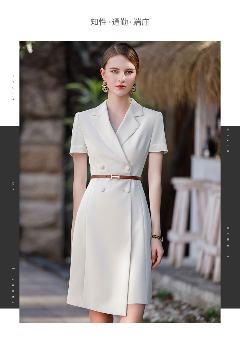 AD职场白领正装连衣裙女高级感不规则西装裙夏季主持人浅色职业装