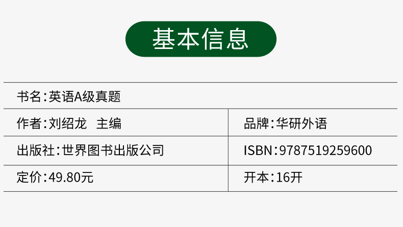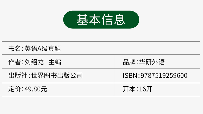 - 本店是“华研外语”品牌商自营店,全国所有“华研外语”、“华研教育”品牌图书都是我司出版发行的,本店为华研官方源头出货,所有图书均为正规正版,拥有实惠与正版的保障!!!