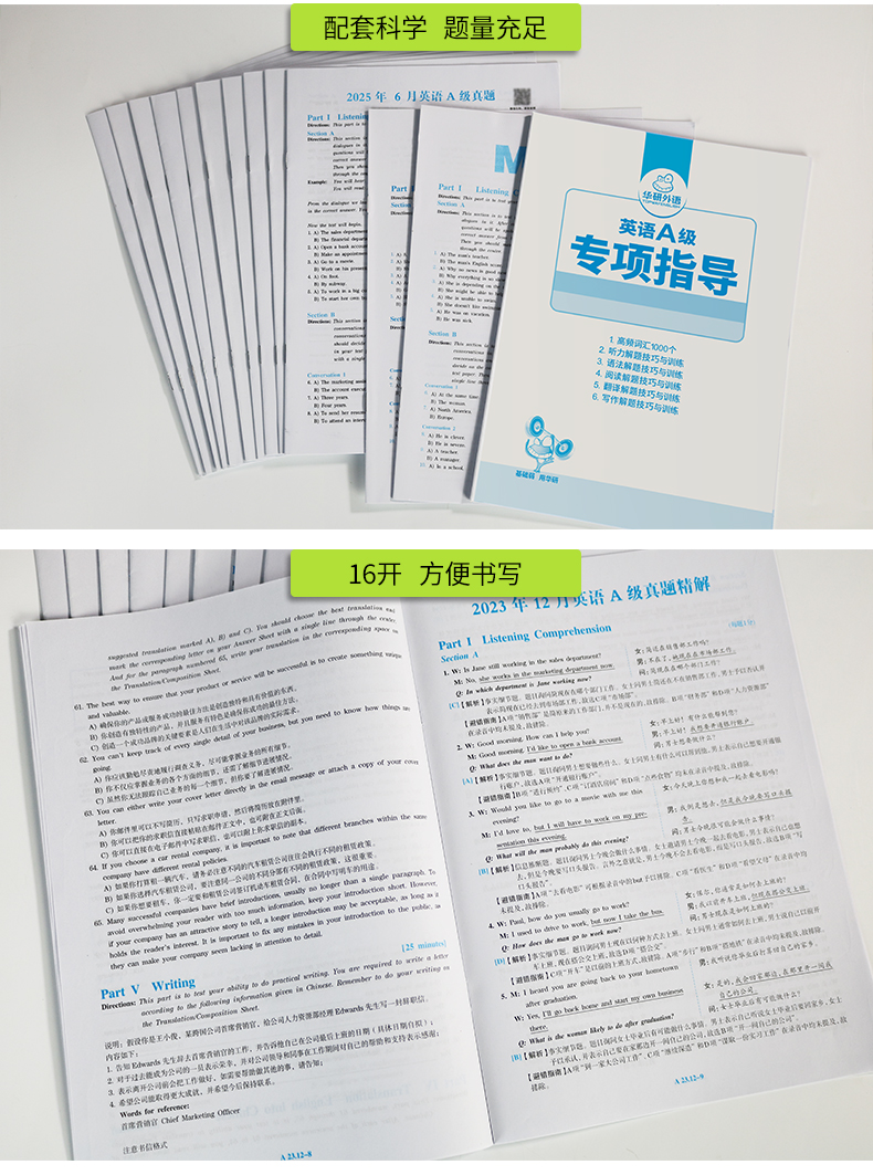 华研外语 英语a级真题考试试卷 备考2025年12月大学英语三级AB级英语3级应用能力考试复习资料教材历年真题预测词汇单词听力阅读书