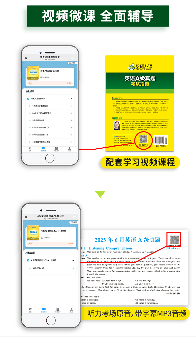 6. 封底扫码免费学习英语A级专项指导视频课程。
