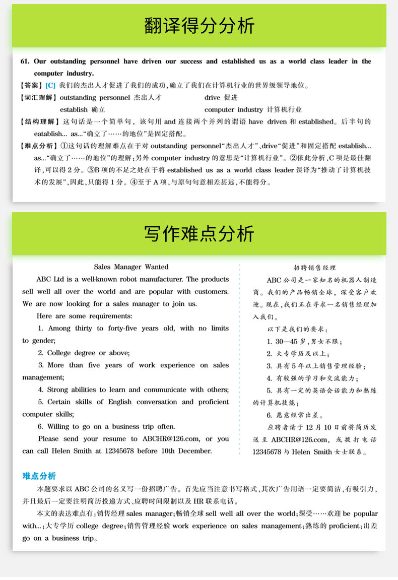3. 阅卷组标准解答,解析详尽细致,提供核心词汇、全文翻译和避错指南;