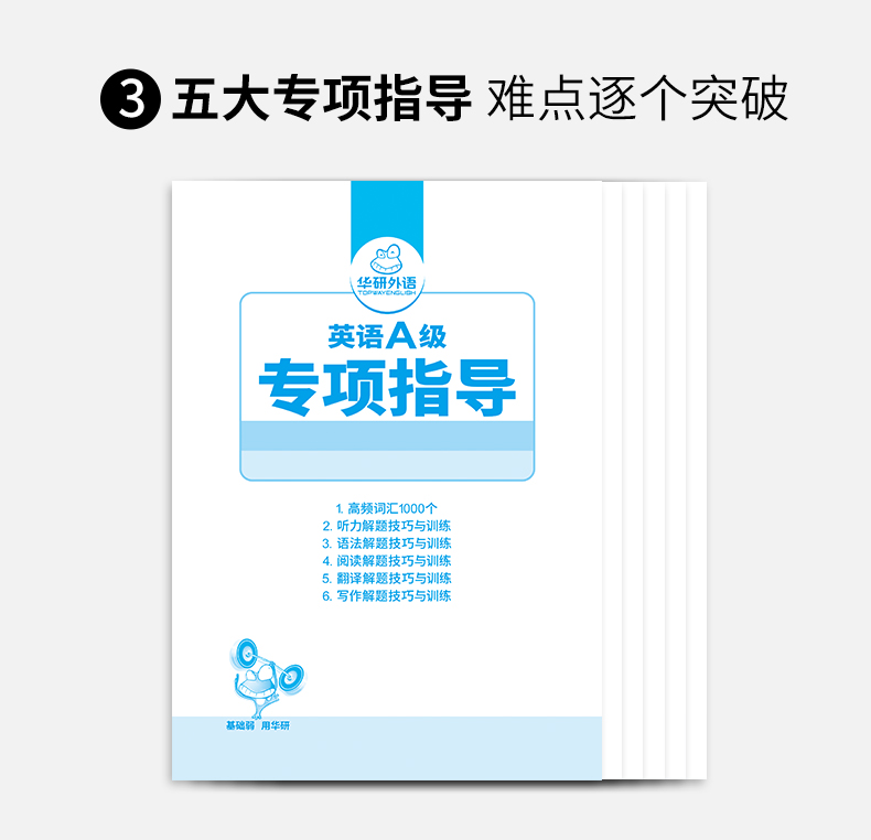 3. 英语A级听力、阅读、语法、翻译、写作5大专项指导及训练+1000高频词汇;