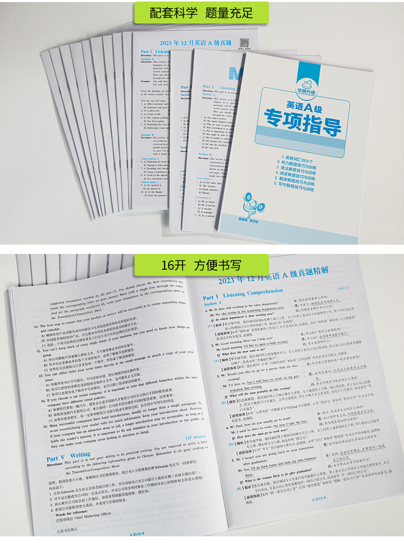 华研外语 英语a级真题考试试卷 备考2026年6月大学英语三级AB级英语3级应用能力考试复习资料教材历年真题预测词汇单词听力阅读书