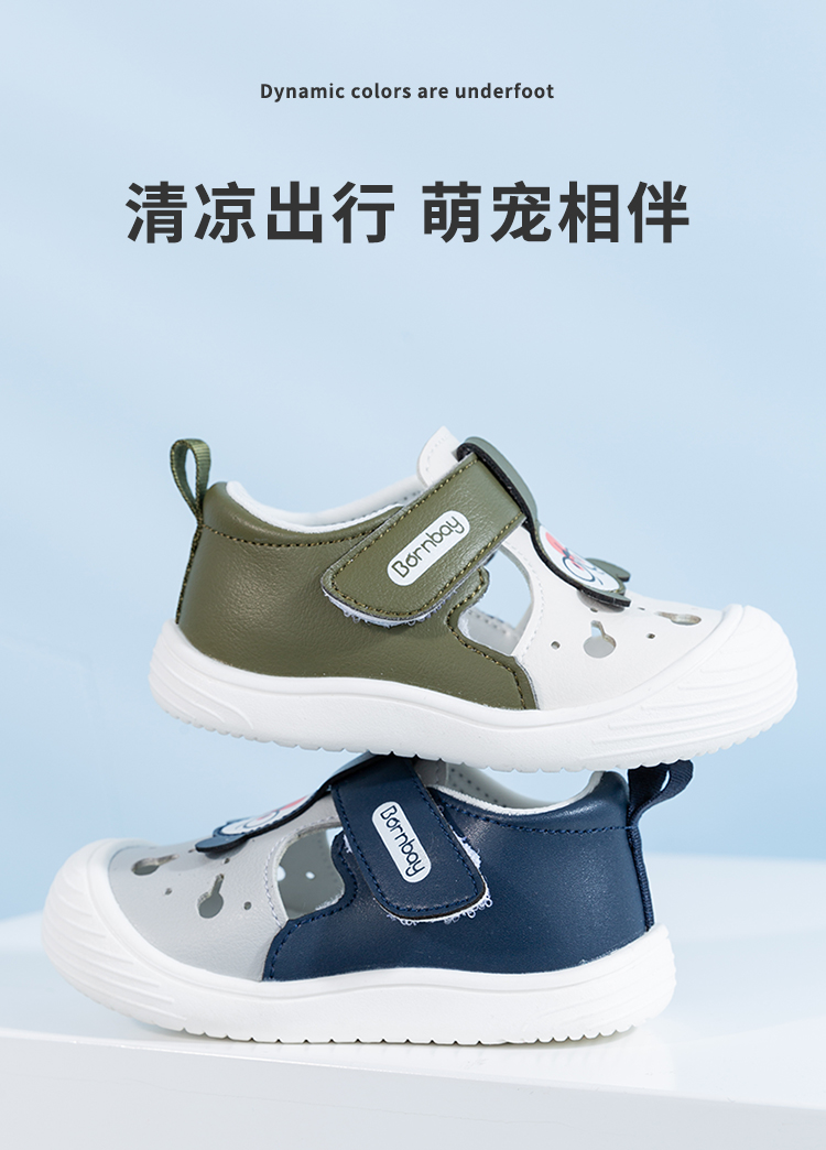 贝贝怡童鞋儿童学步鞋夏季新款防滑防撞休闲鞋男女童魔术贴小童鞋子