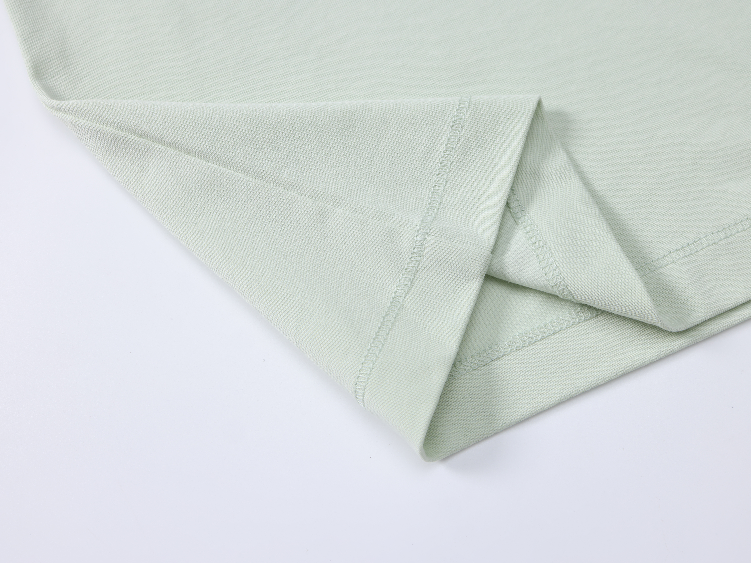 下摆袖口螺旋弹簧线迹+弹力线,会随面料同步伸缩,应力分散,不崩线,耐用性远优于普通平缝/锁式线迹。