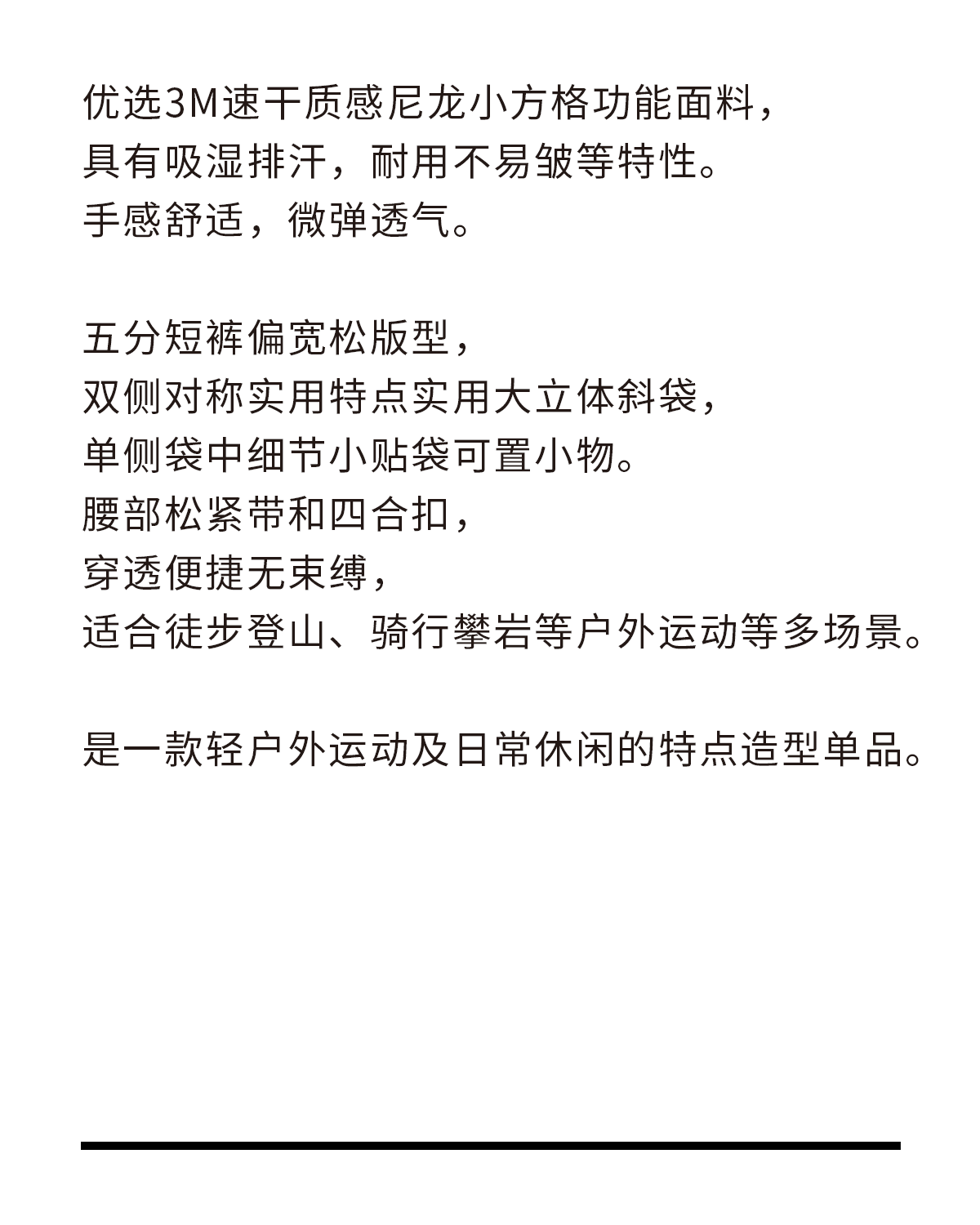 吃茶去chichaqu26春夏3M速干户外运动卡扣短裤山系休闲徒步骑行