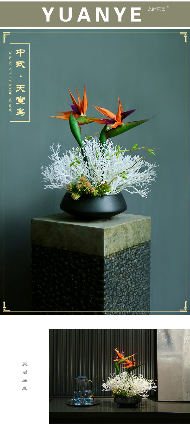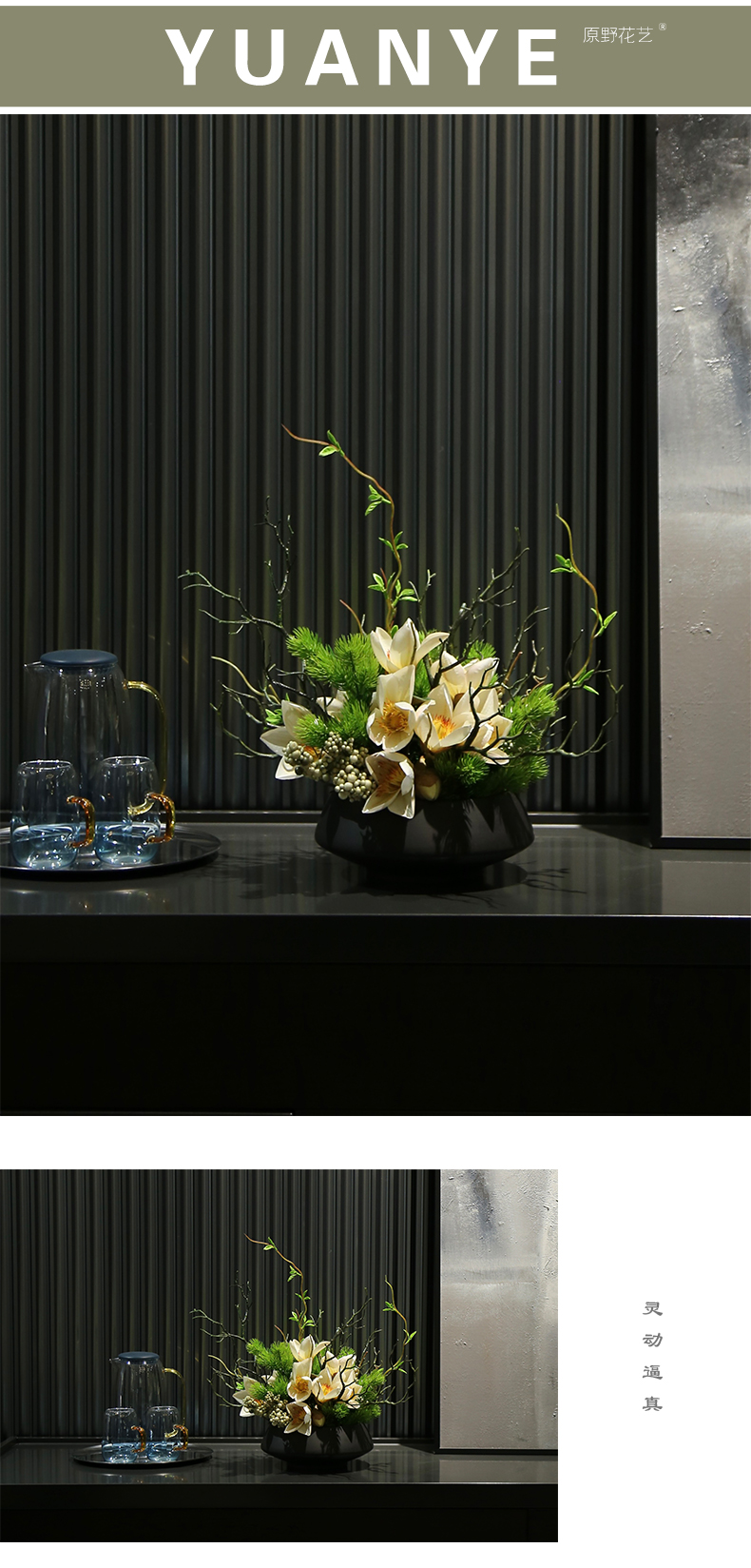 新中式高端仿真花餐桌花摆花茶室客厅玄关装饰摆设茶几前台装饰花