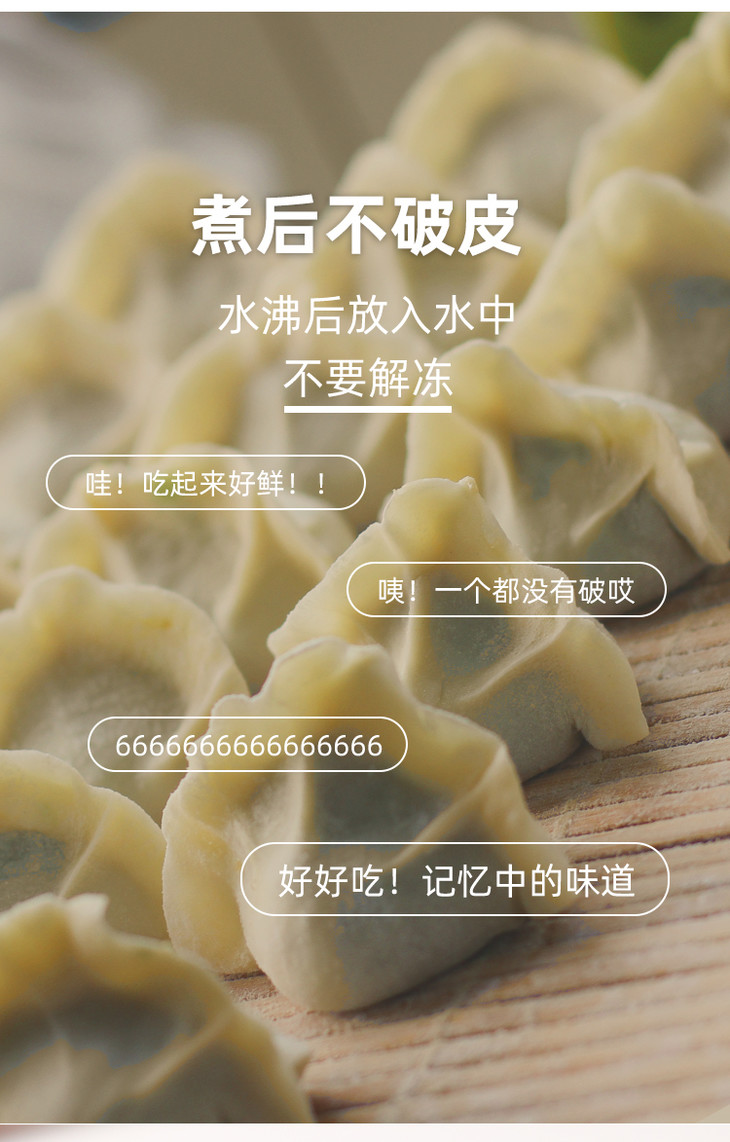 【配料表】小麦粉、饮用水、鲅鱼肉、洋葱、韭菜、植物油、藻.集味鲜(水、食用盐、海带汁、白砂糖、味精、酸水解植物蛋白调味粉、酵母精粉、食品添加剂(焦糖色、冰乙酸、5’-呈味核苷酸二钠))、浓缩牡蛎汁(牡蛎、水)、食用盐、日本味淋(水、糯米、米曲、酿造酒精、麦芽糖)、淀粉、姜、味精、绵白糖、白胡椒粉。