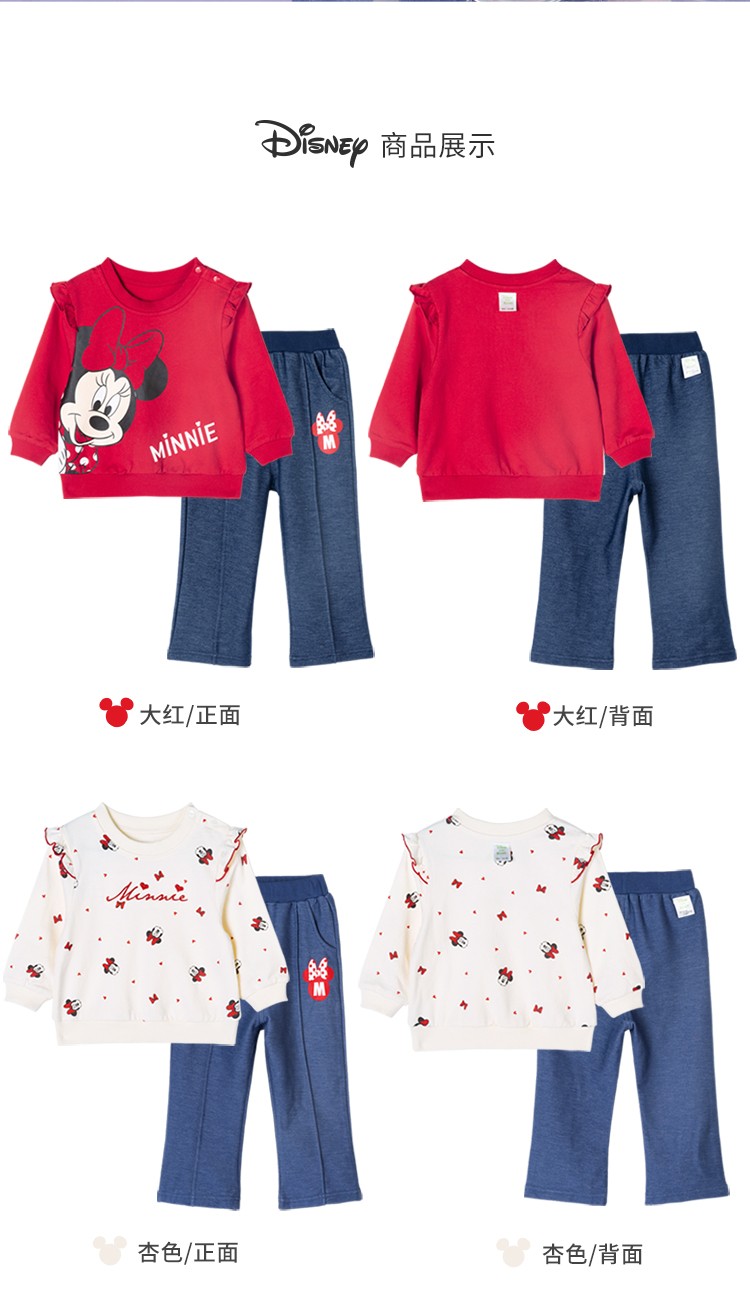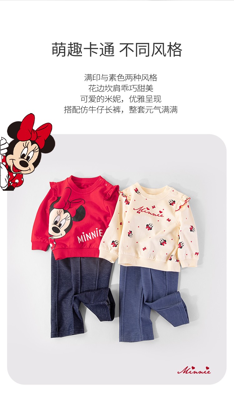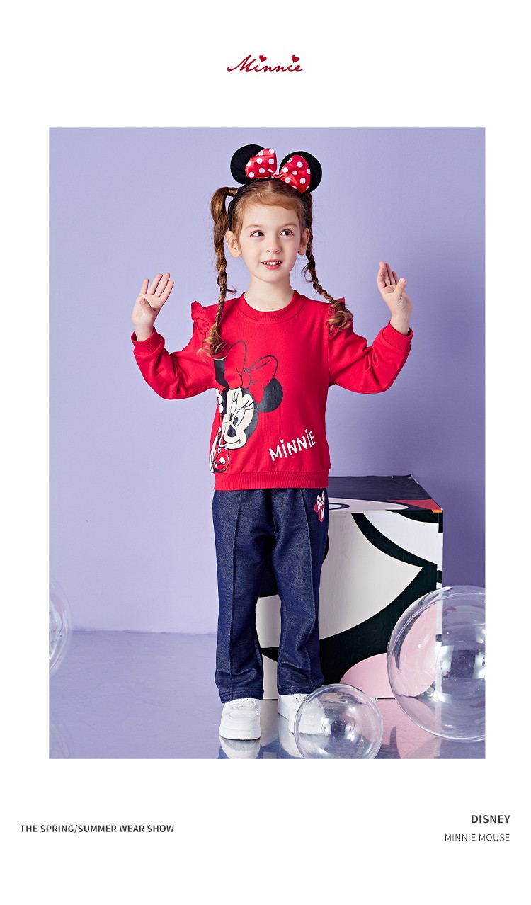 迪士尼(Disney)童装 女童套装可爱米妮小飞袖上衣牛仔裤2件套