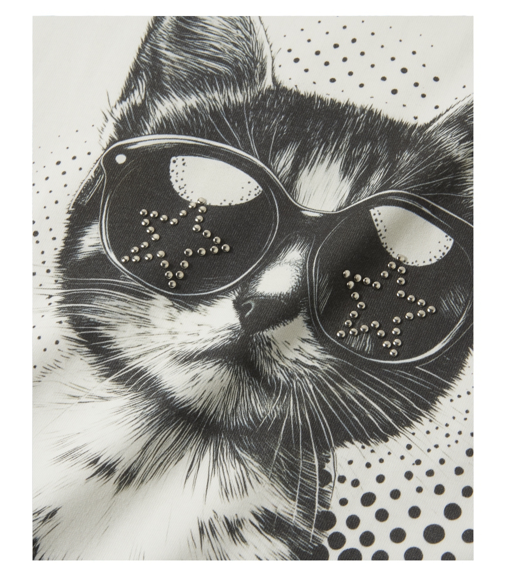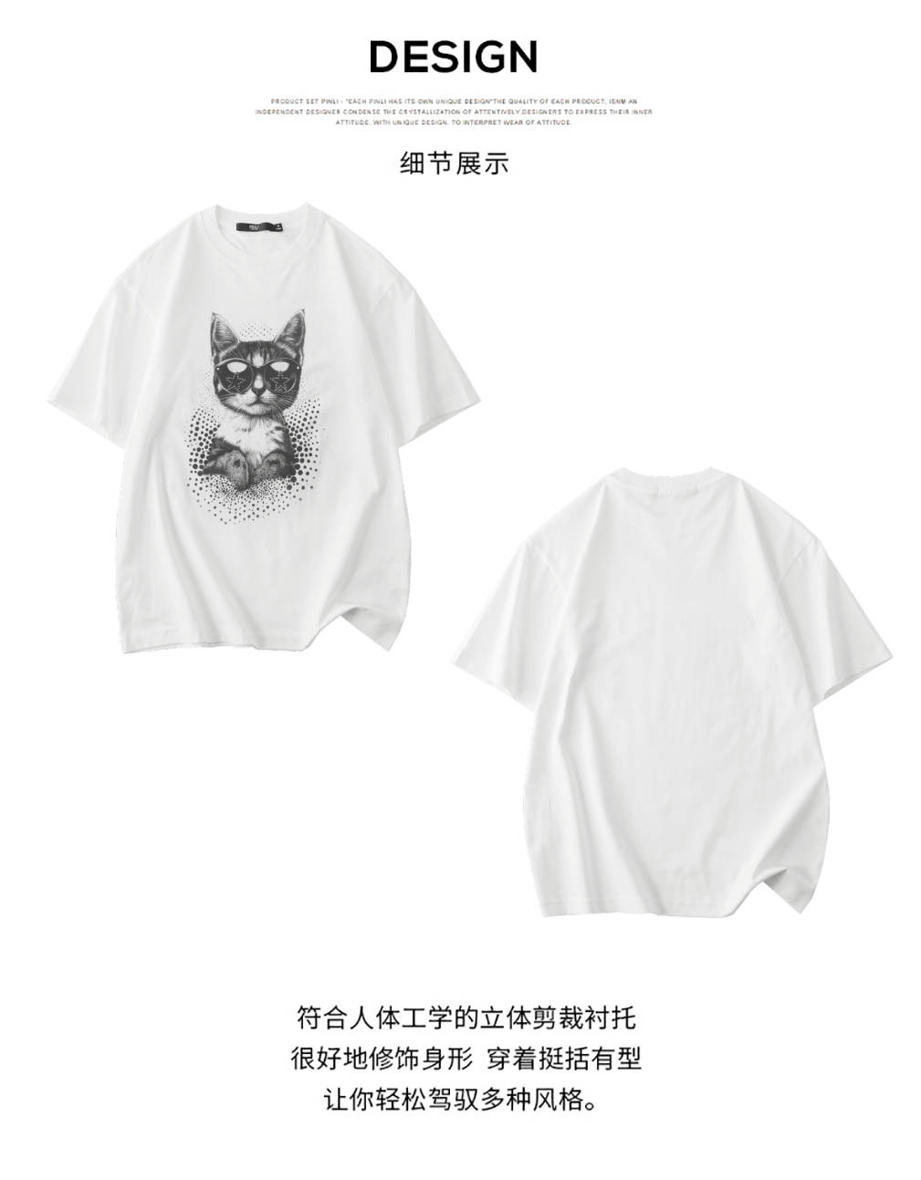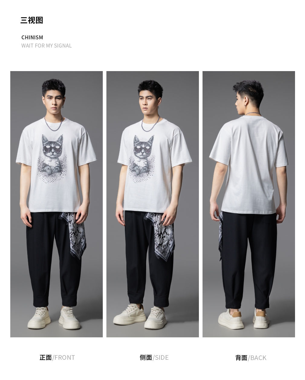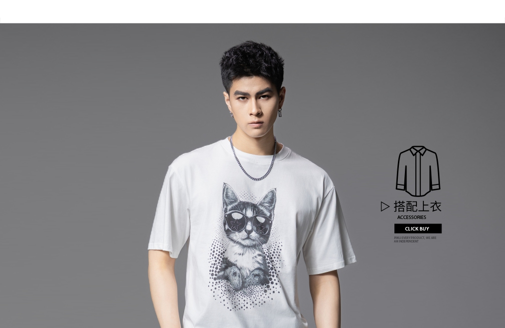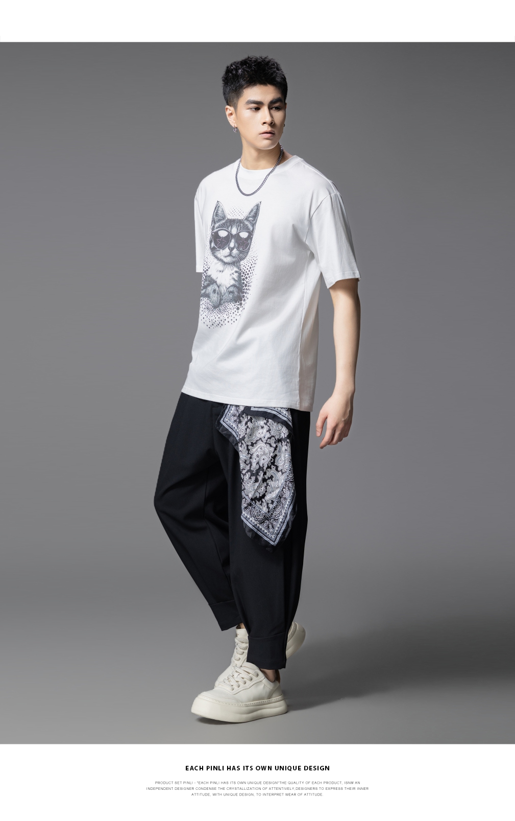PINLI品立2025夏季新款男士猫咪印花金属烫片圆领短袖T恤上衣潮牌BG252111037