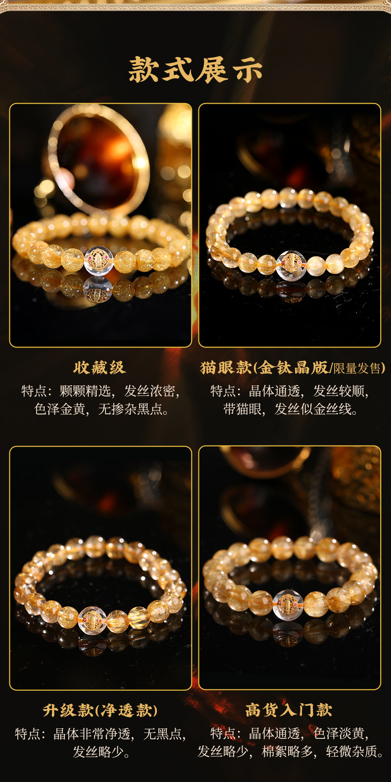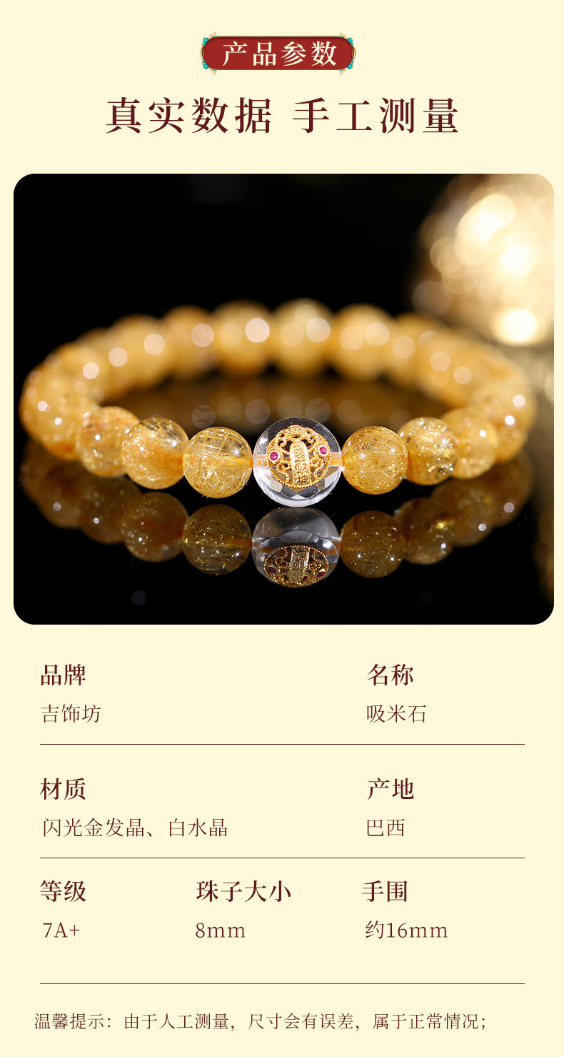 【金元滚滚】巴西维纳斯金发晶水晶手链手串金银满仓手链金发晶手串