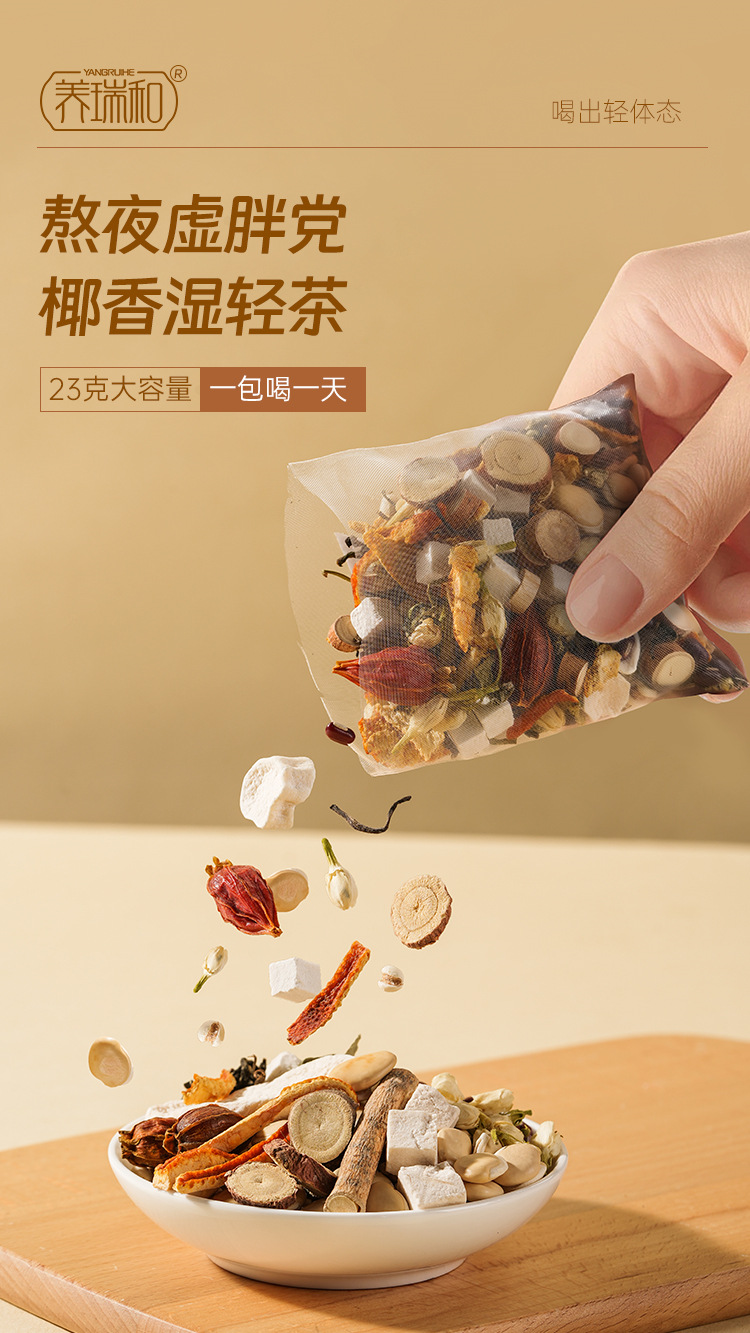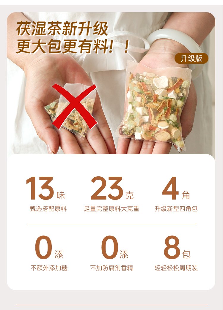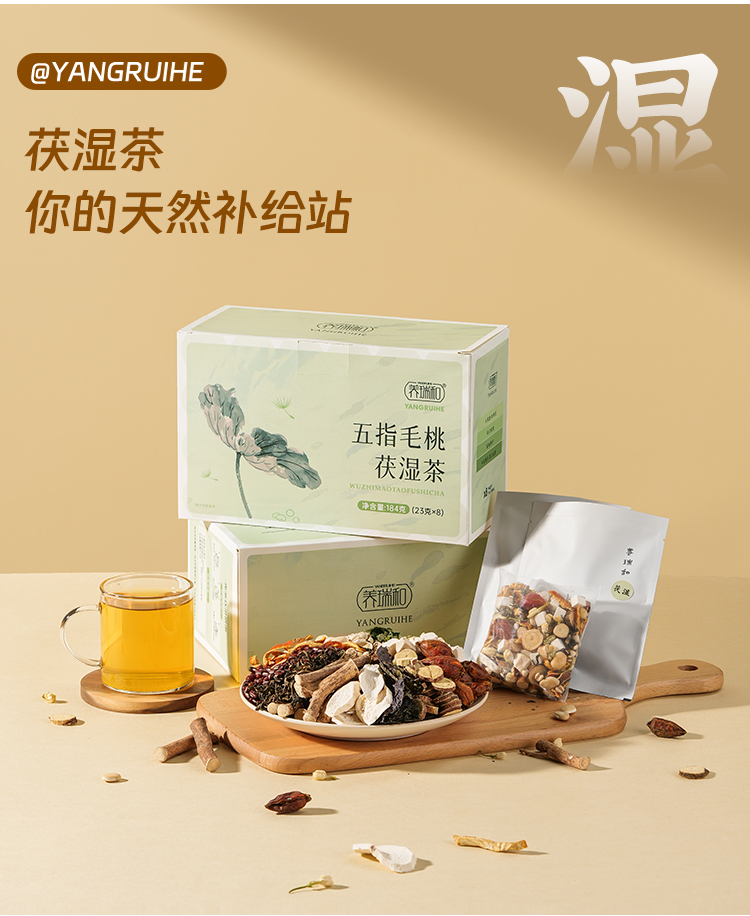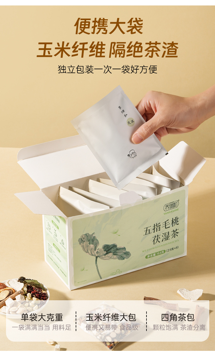 养瑞和丨五指毛桃茯湿茶184克·23g*8包·大容量四角包·湿气湿热湿寒·茯苓·橘皮·赤小豆·薏苡仁·白扁豆·甘草·茉莉花·蒲公英