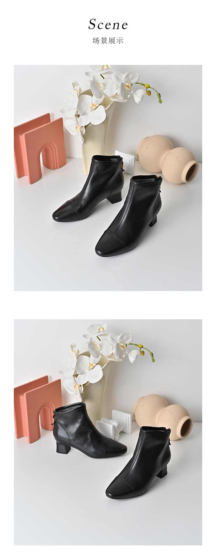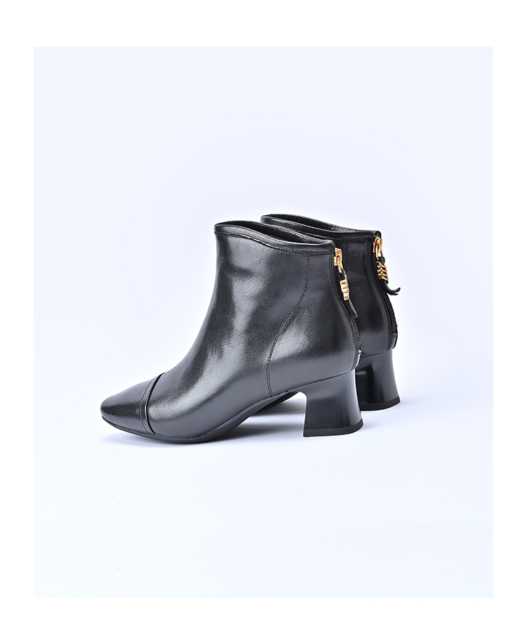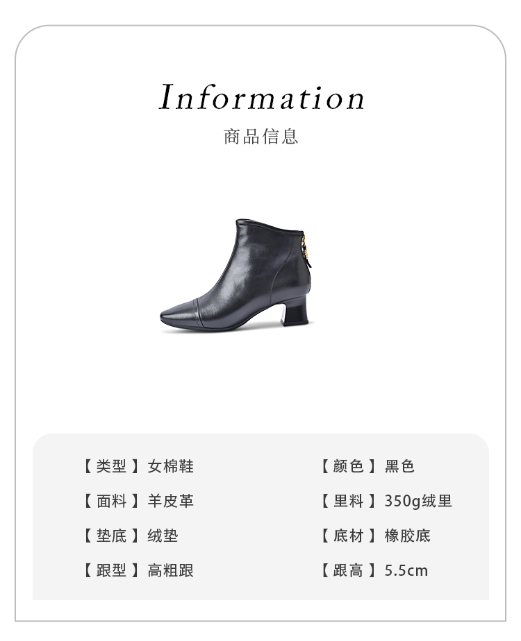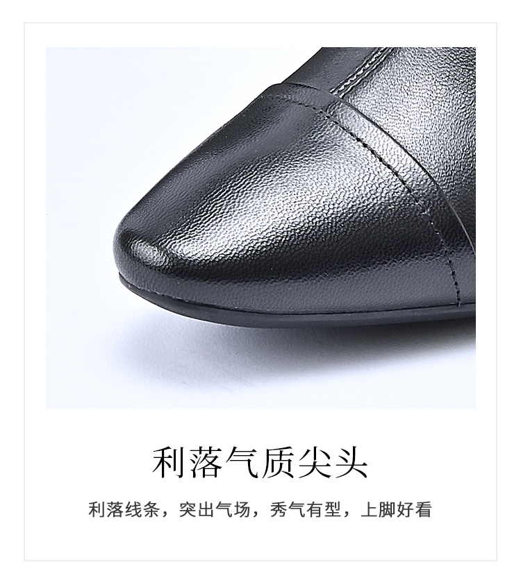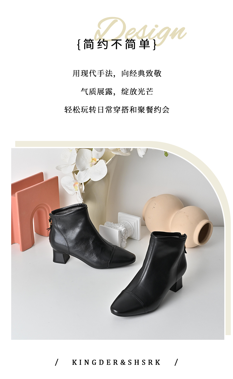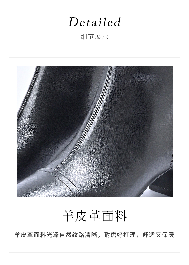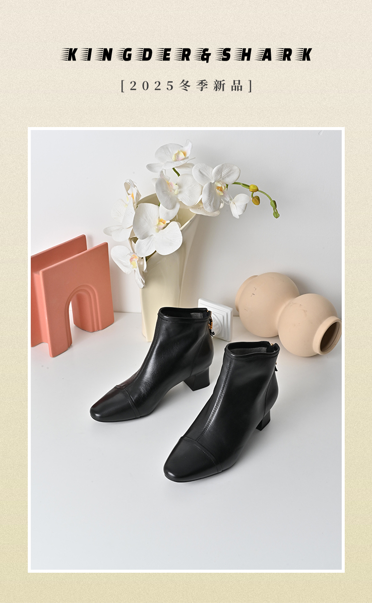 经典鲨2025冬专柜新品尖头羊皮革加绒加厚高粗跟气质短靴女KW117-558121