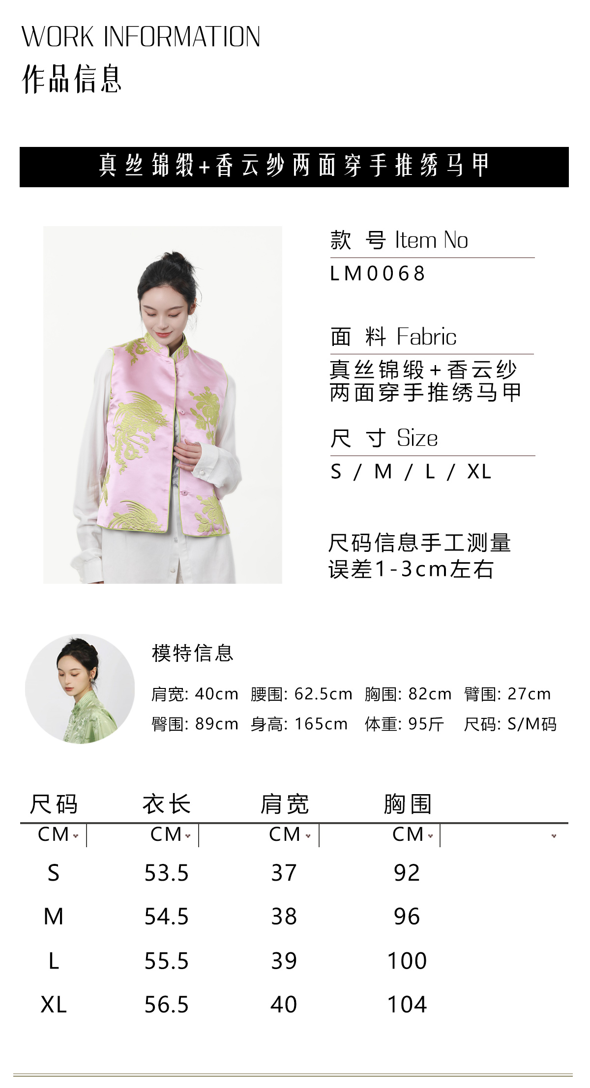 瑕疵 |盛唐牡丹| 繁花似锦真丝锦缎+香云纱两面穿手推绣马甲[特价品](特殊商品不退不换)