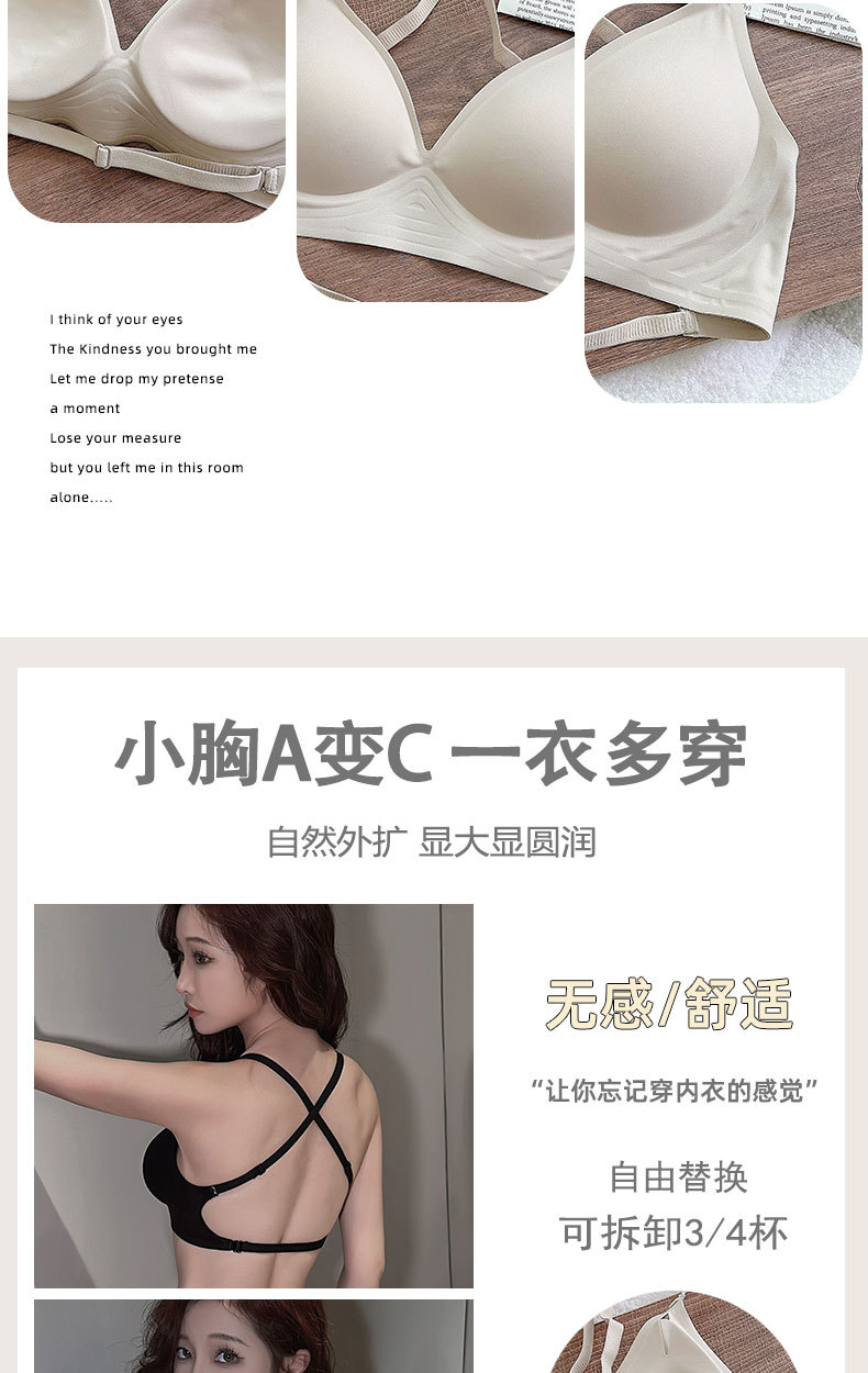 【上身秒变漫画身材!小胸聚拢显大外扩无痕内衣】下围以及侧边果冻条软支撑,上身立显圆,外扩不下垂,腰细大U型美背,打造辣妹沙漏腰,夏季薄款隐形露背文胸女粉丝专属