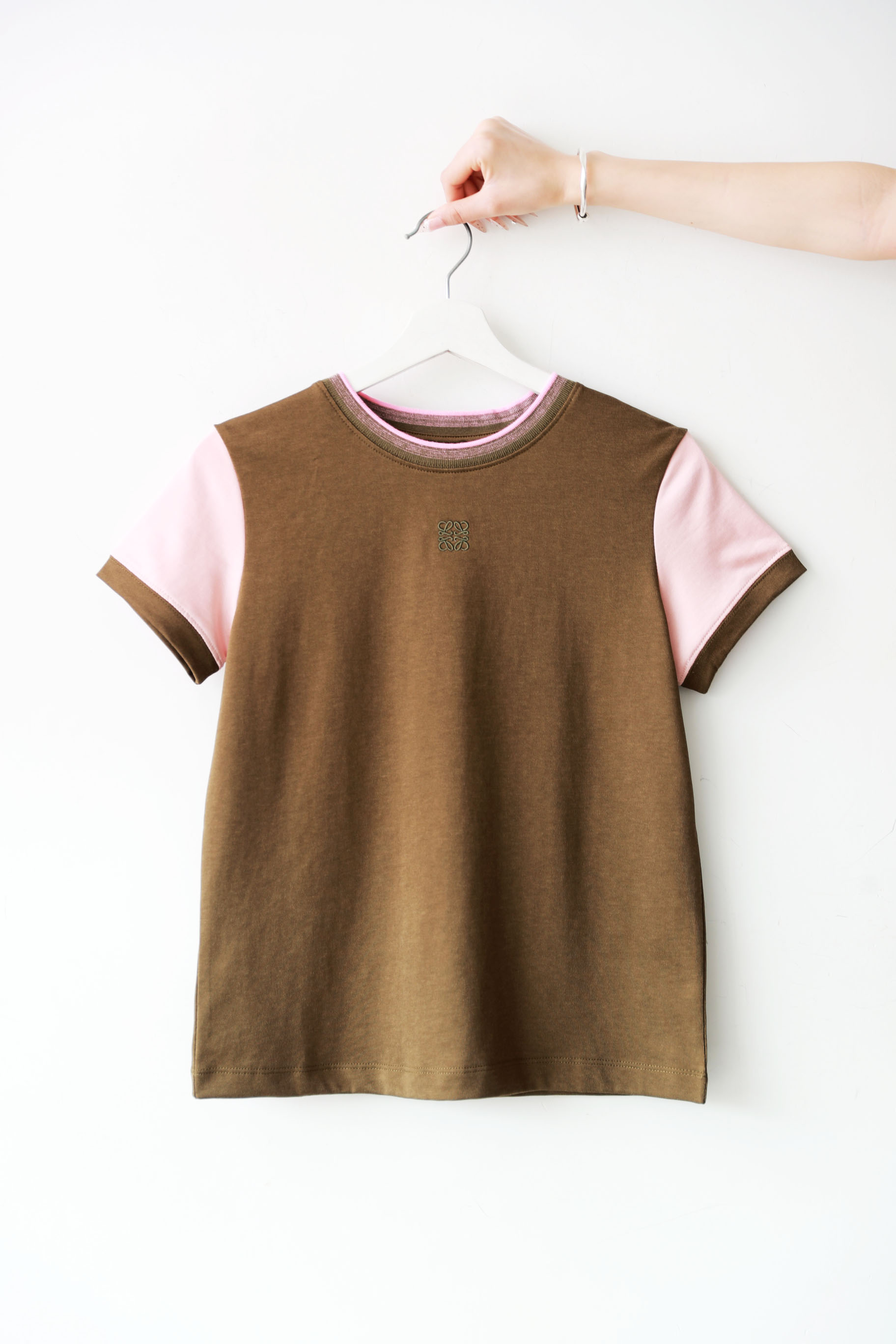 上身简直绝了啊!!刺绣工艺+复古拼接,法式圆领半袖t恤E040668