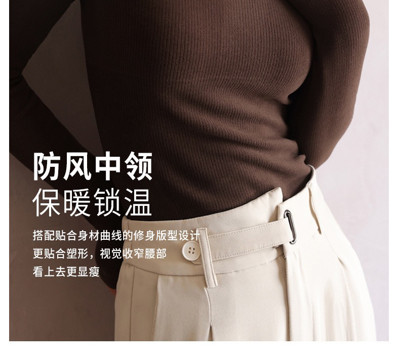 新款德绒螺纹半高领长袖打底衫女士内搭秋冬季正肩t恤中领上衣FS1654