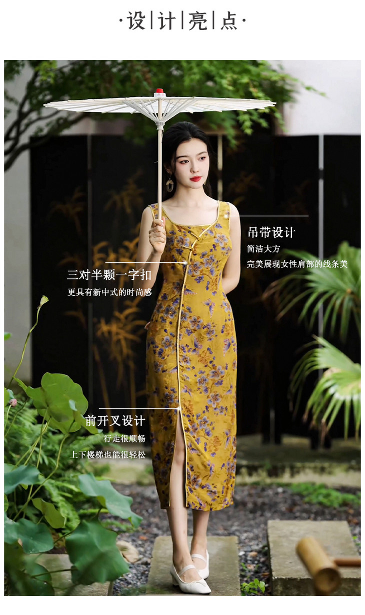 🍀肩带处连接下来做了旗袍襟的分割,并做了前开叉的设计,是考虑到姐妹们坐下时更加安全便利,不易走光,也更加得体。