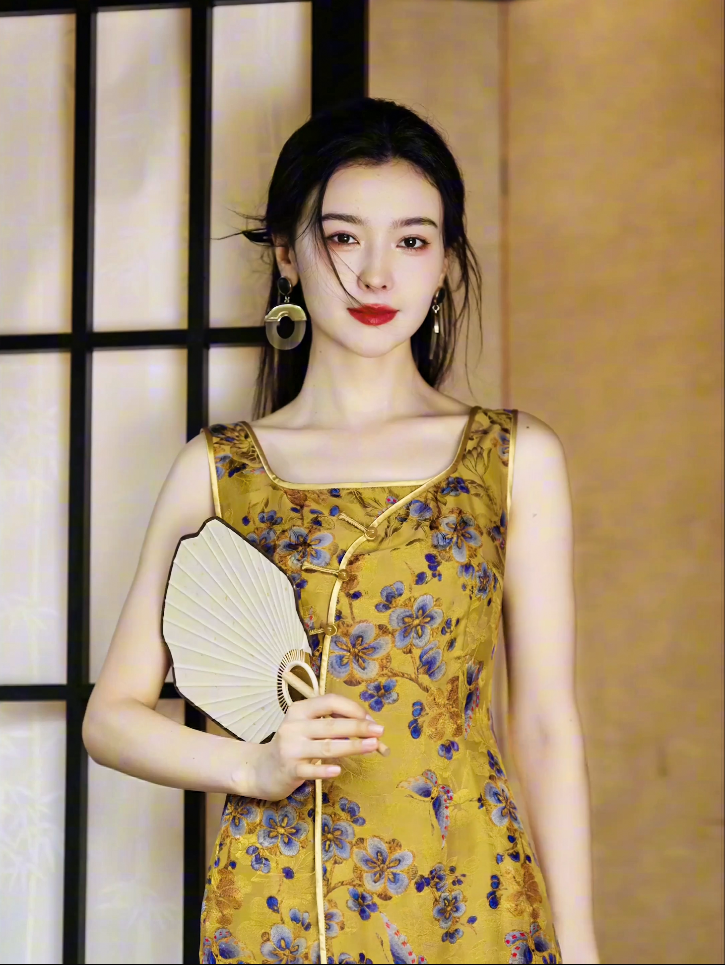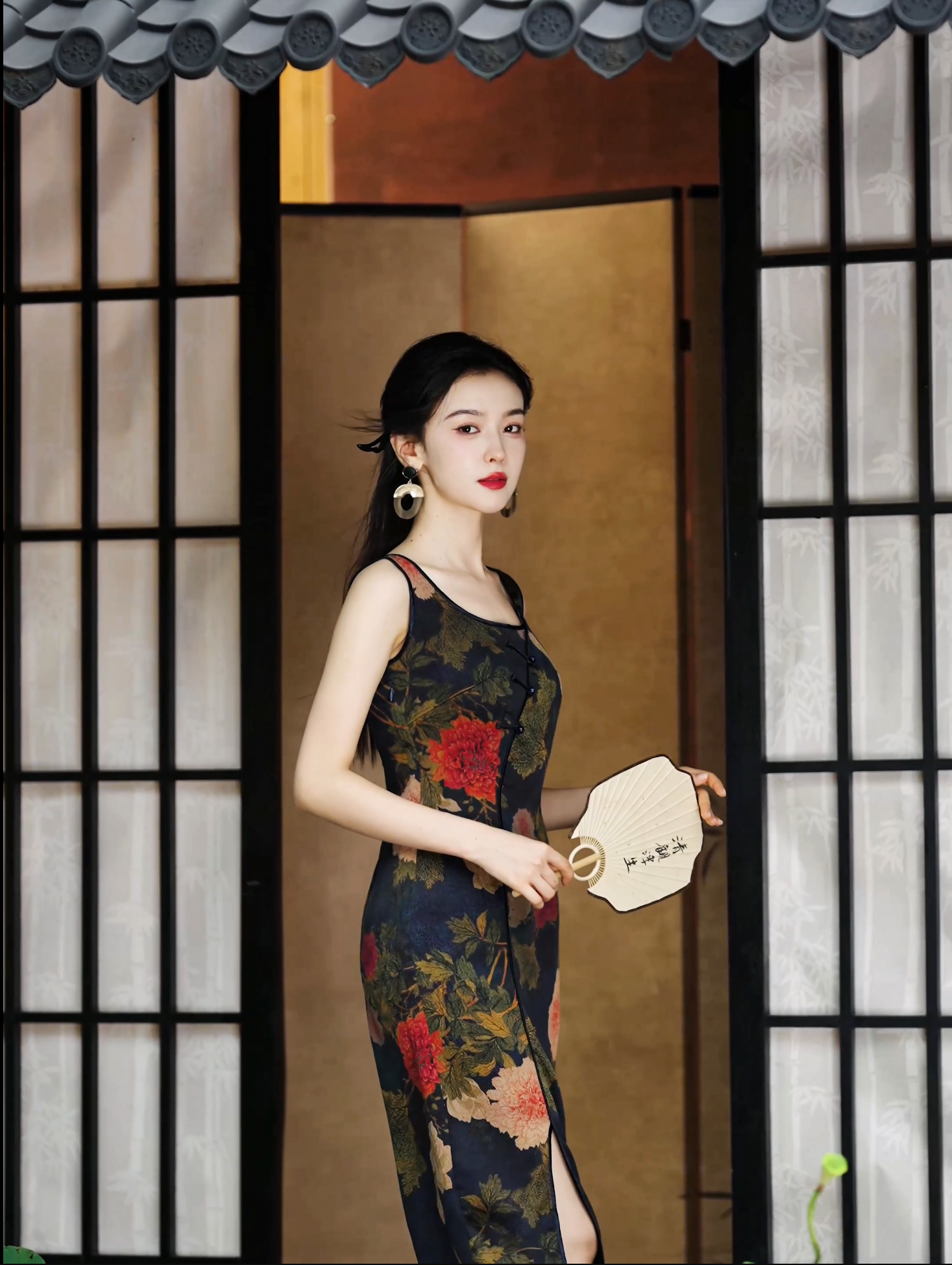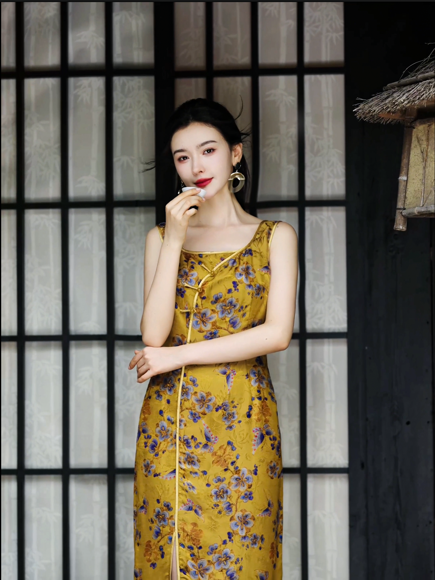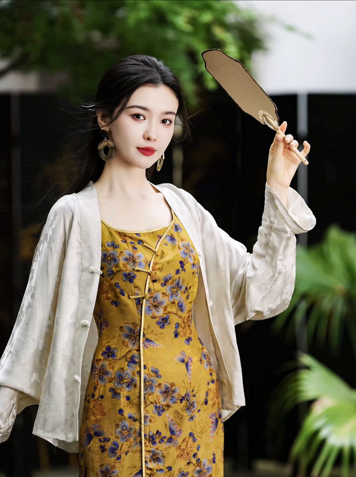 旗袍襟和中式纽扣的设计更添温婉雅致