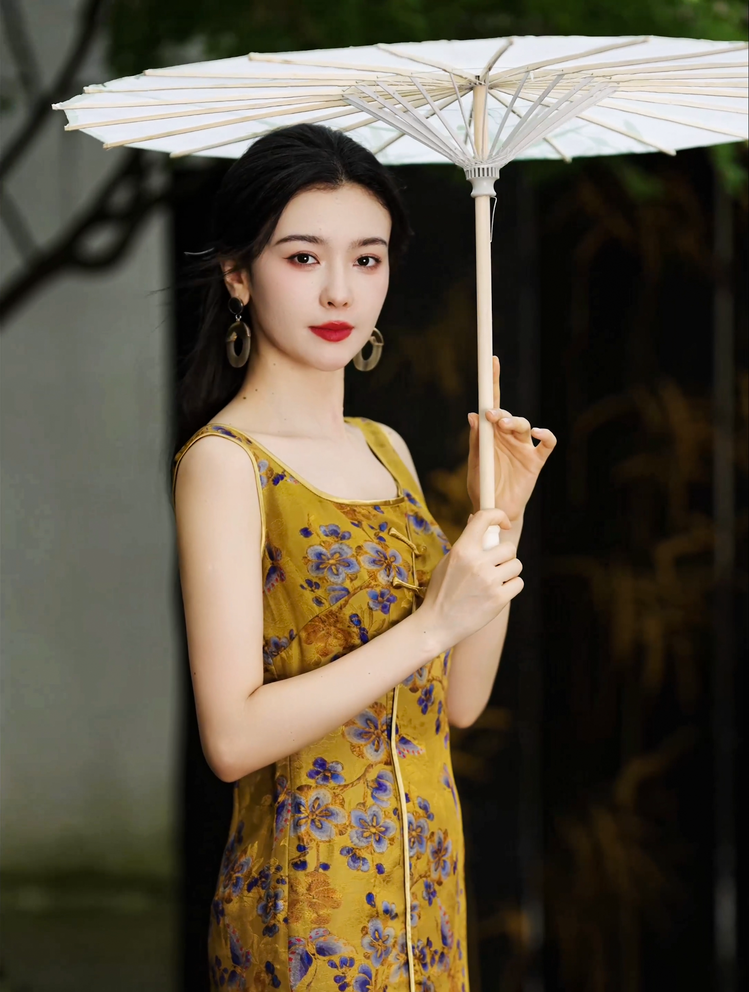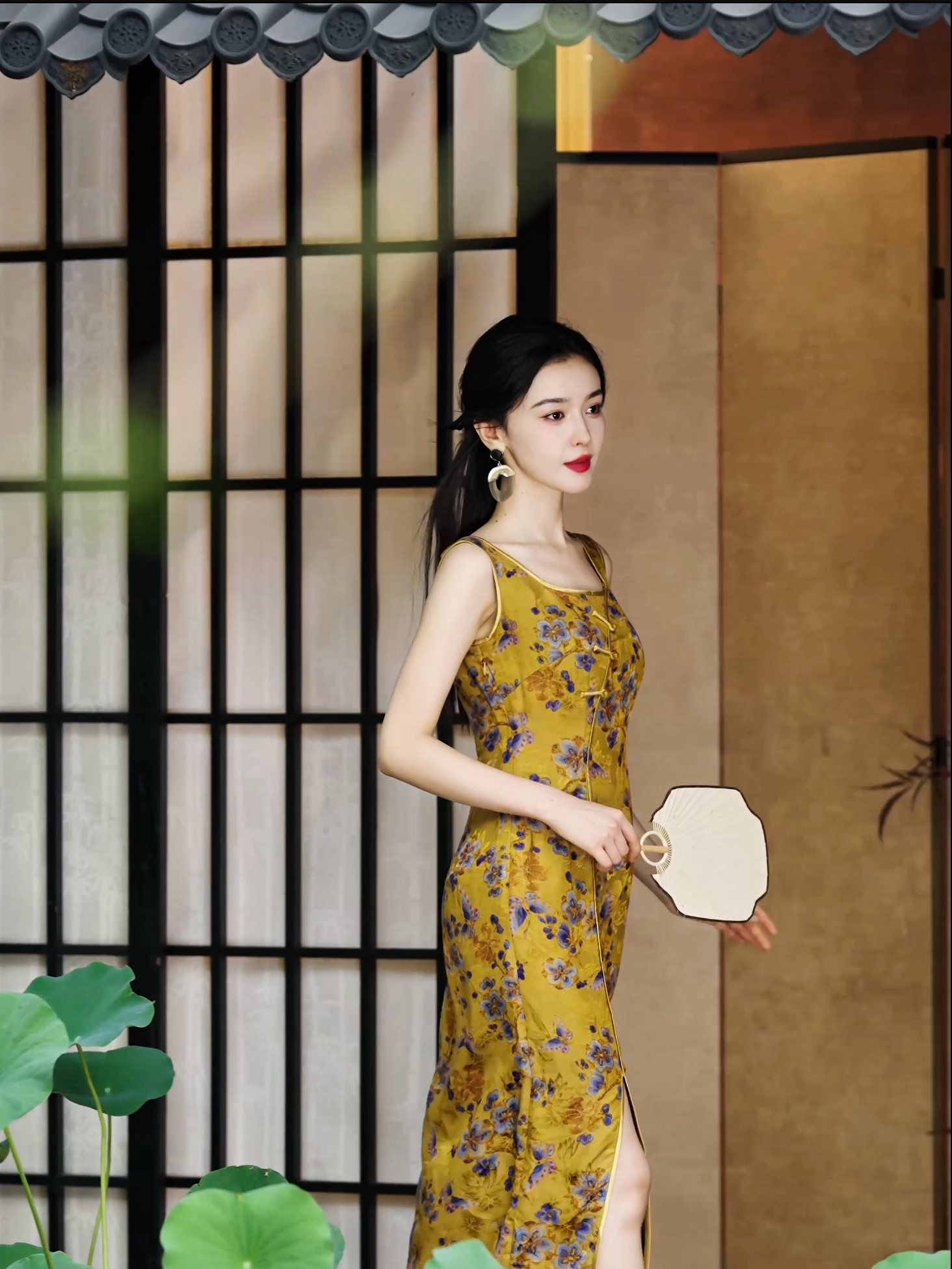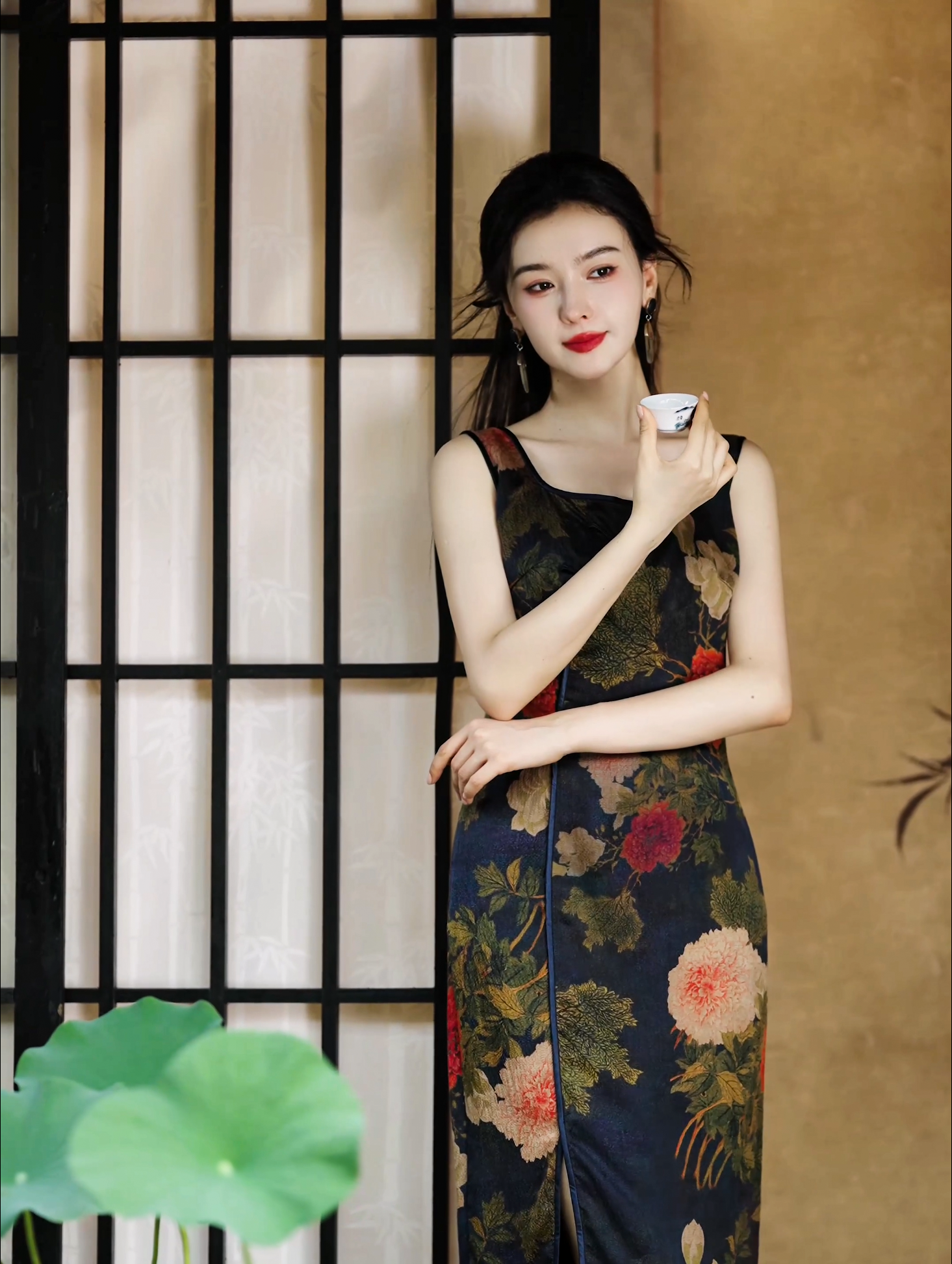 旗袍襟和中式纽扣的设计更添温婉雅致