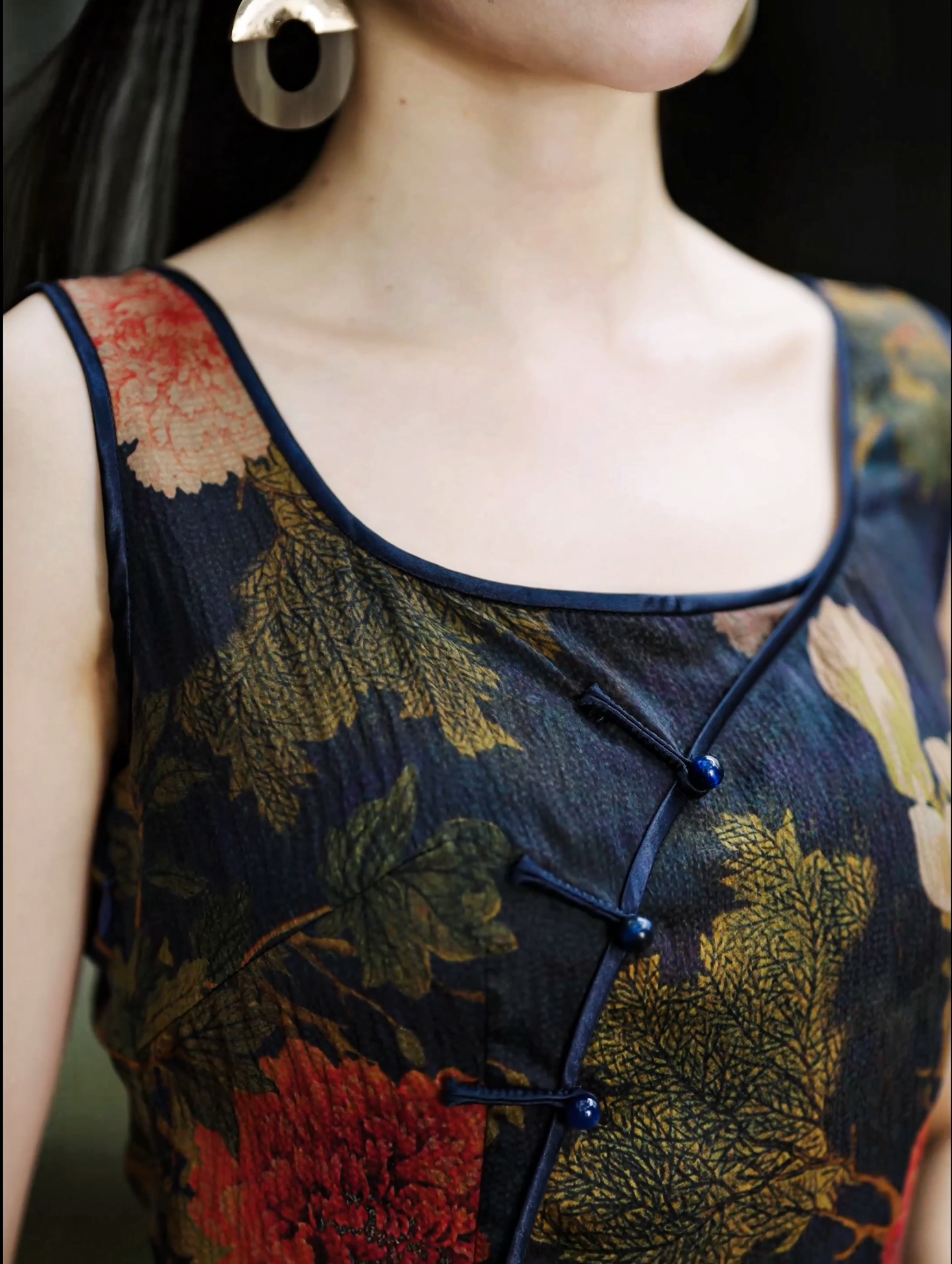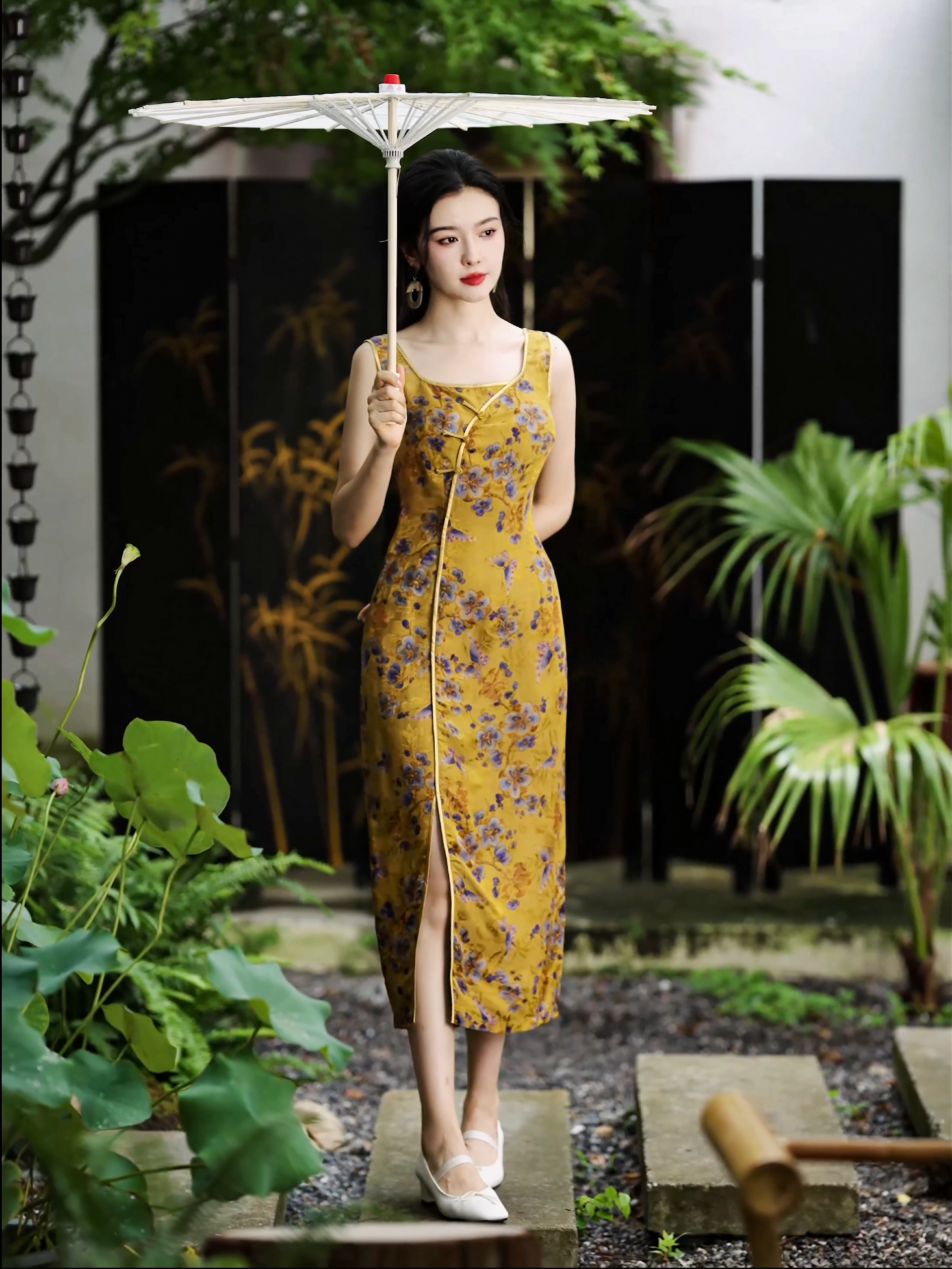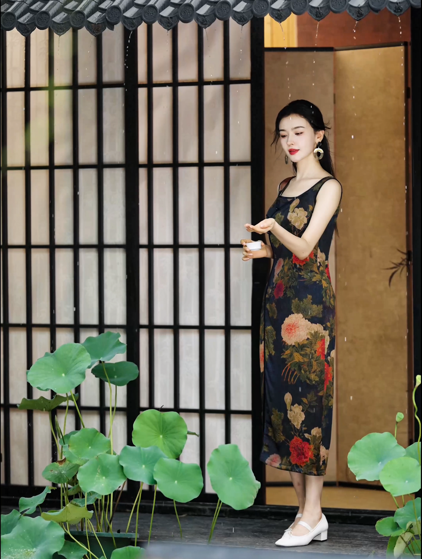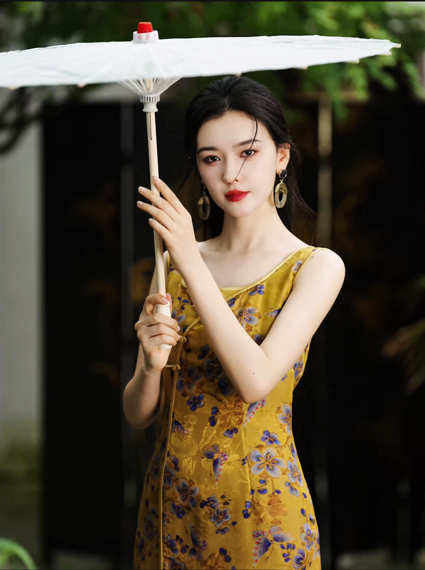 旗袍襟和中式纽扣的设计更添温婉雅致