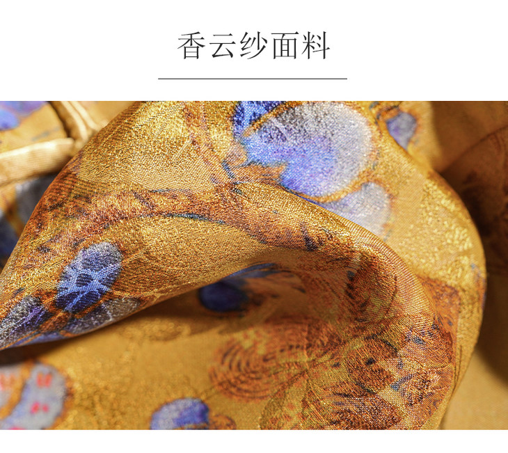 🌔秋香金为16姆米交织真丝香云纱,拥有很好的光泽感,手感细腻柔滑,透气性很好,上身零压感,适合夏日穿着。
