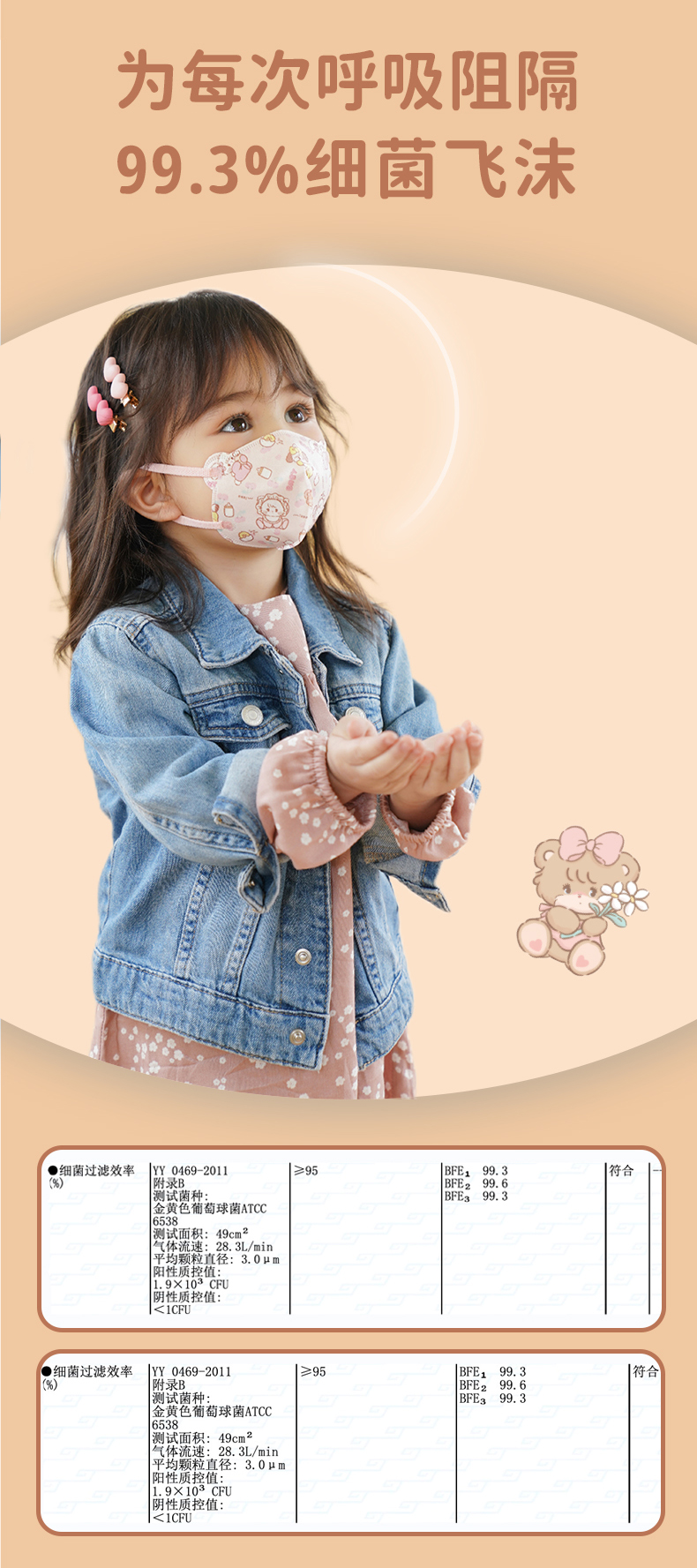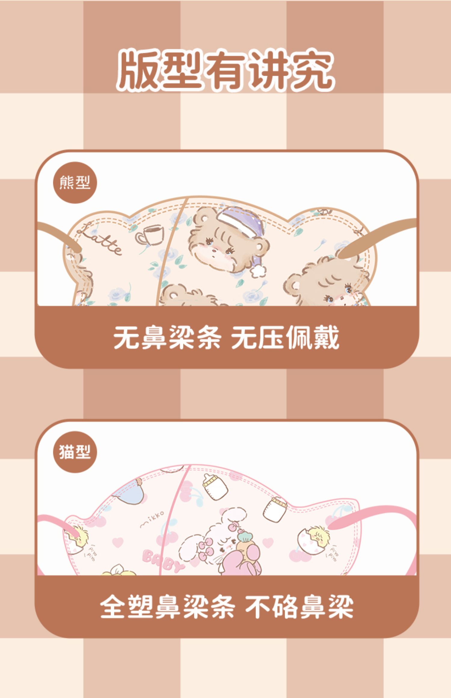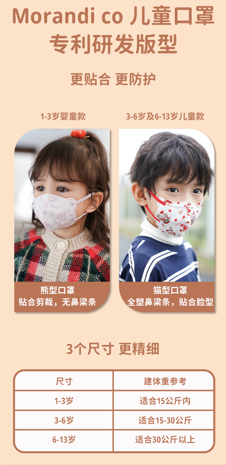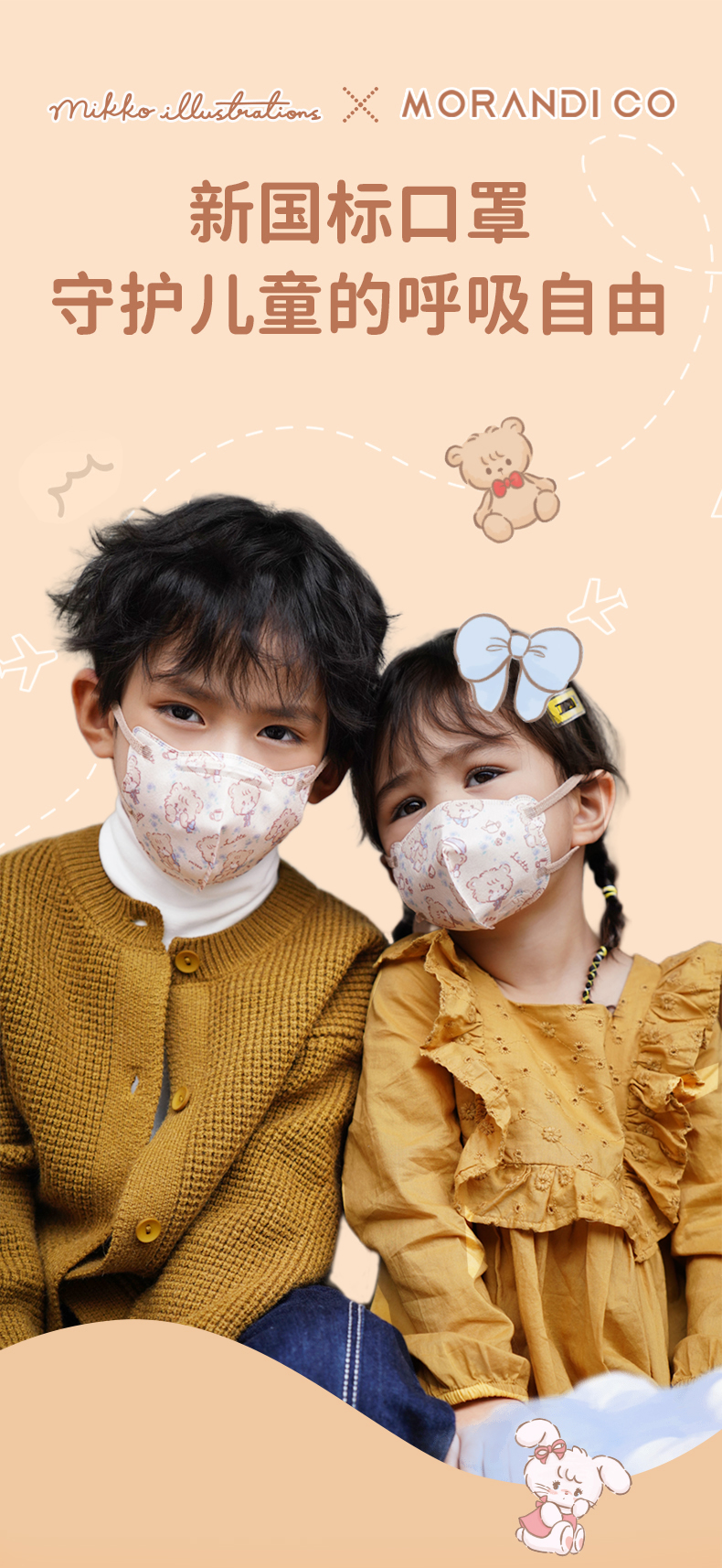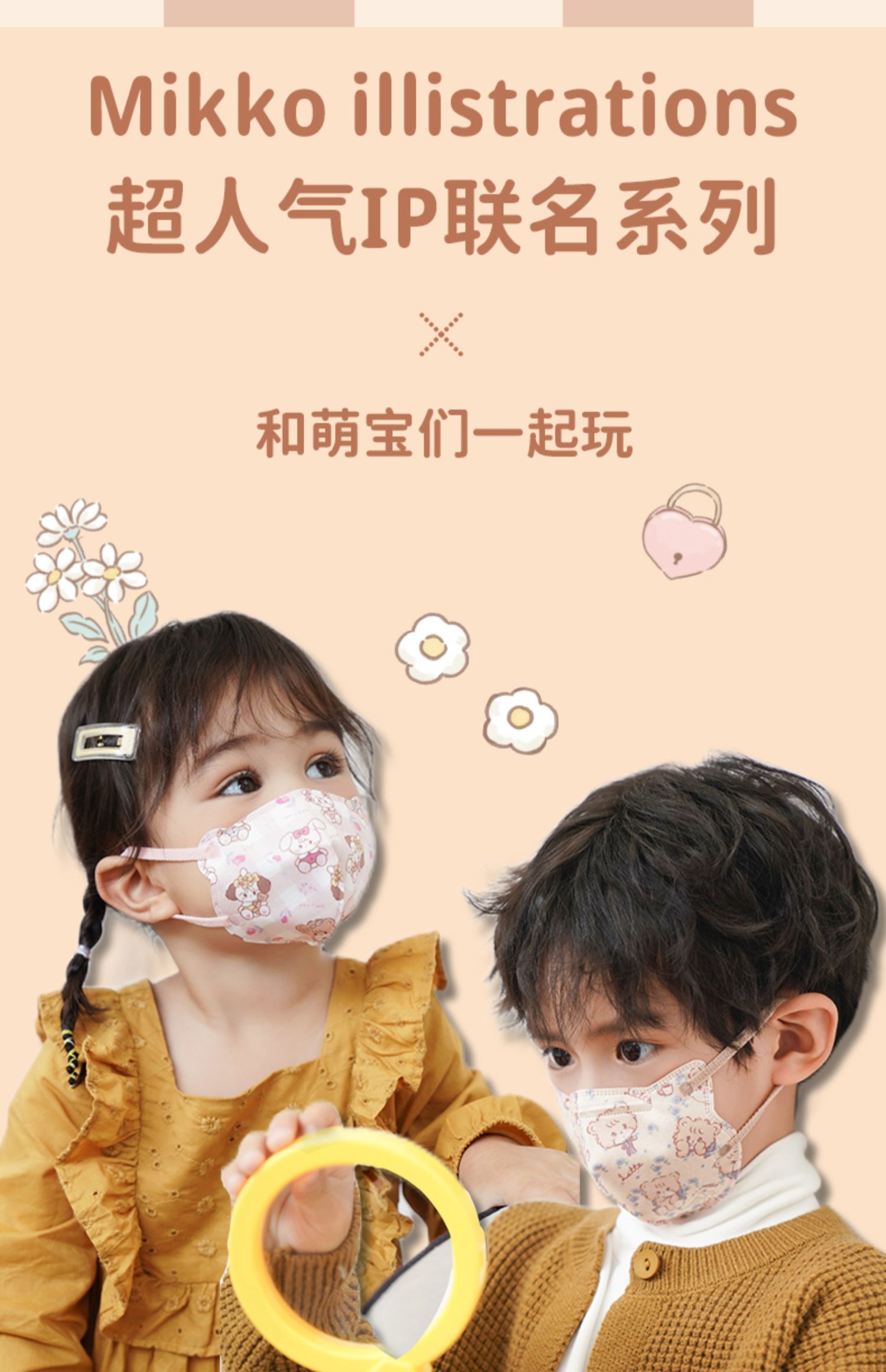 0-3岁5枚装Morandi Co MC一次性婴儿儿童口罩立体mikko联名独立包装