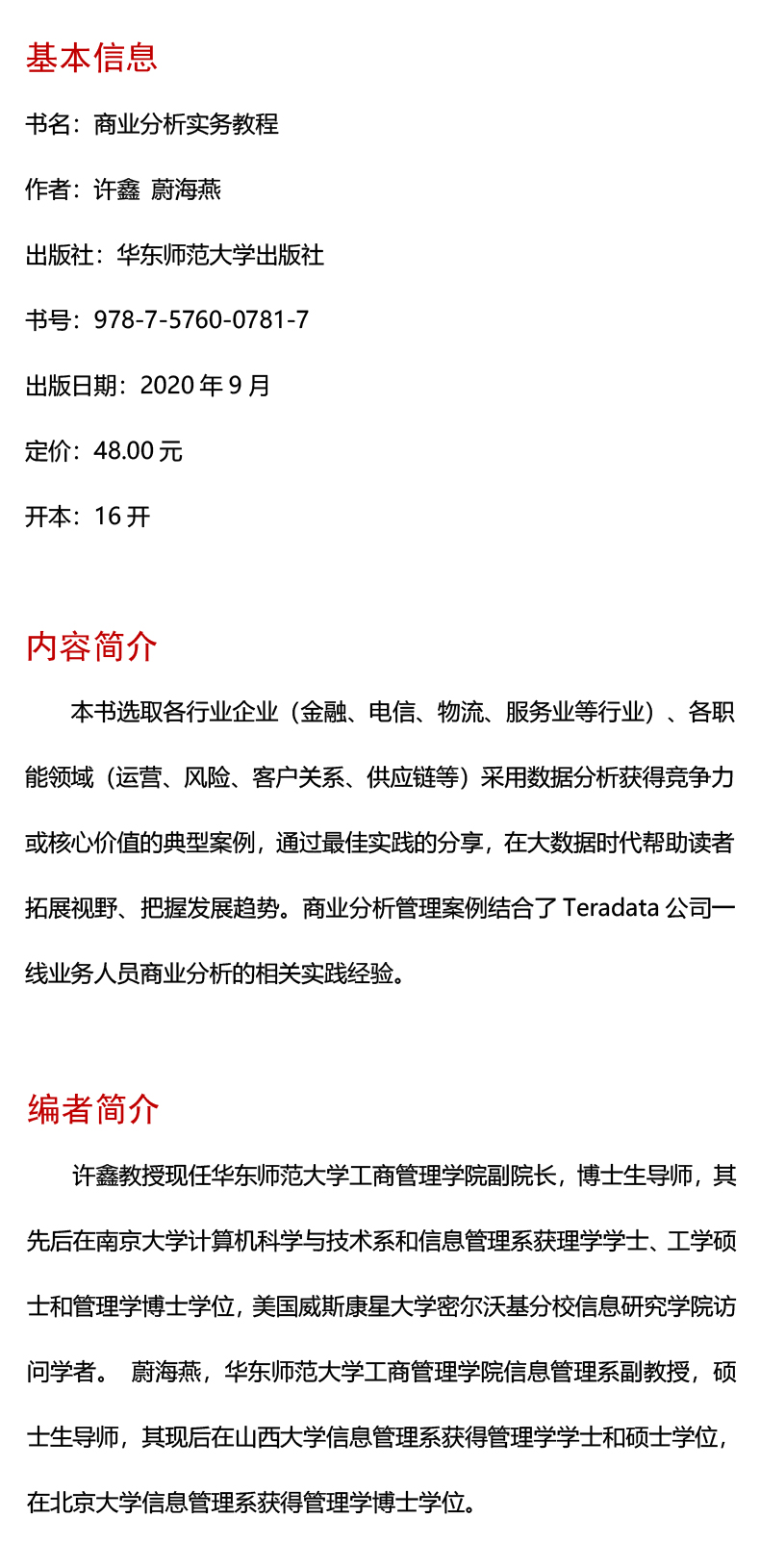 商业分析实务教程 许鑫 蔚海燕 高校教材 案例分析 正版 华东师范大学出版社