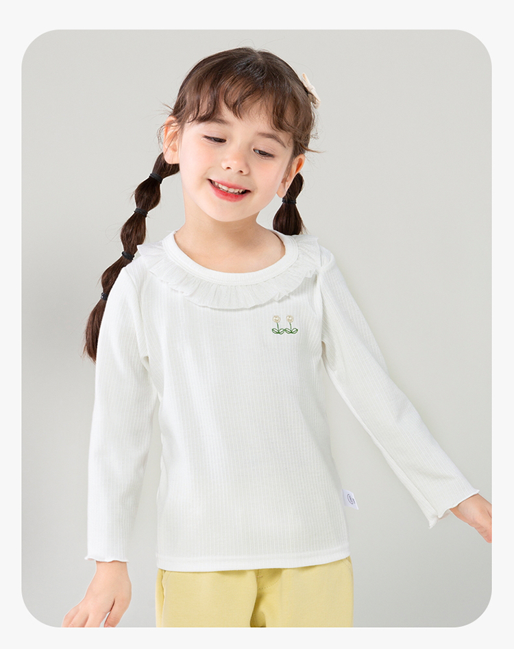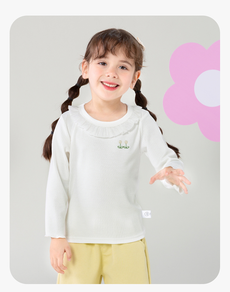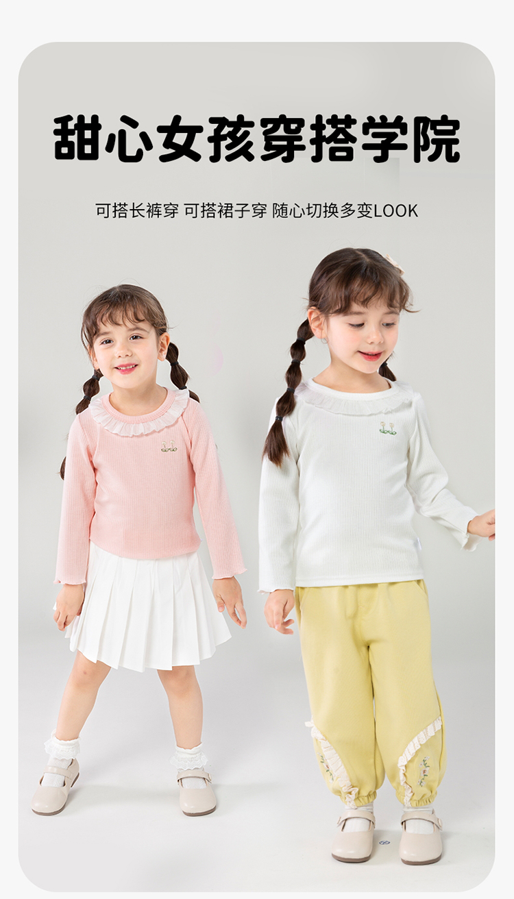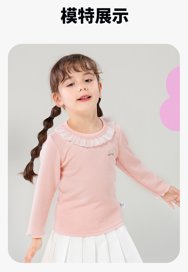 贝贝怡女童长袖T恤2024春装洋气娃娃领上衣女中大童甜美儿童衣服ZB1DS032