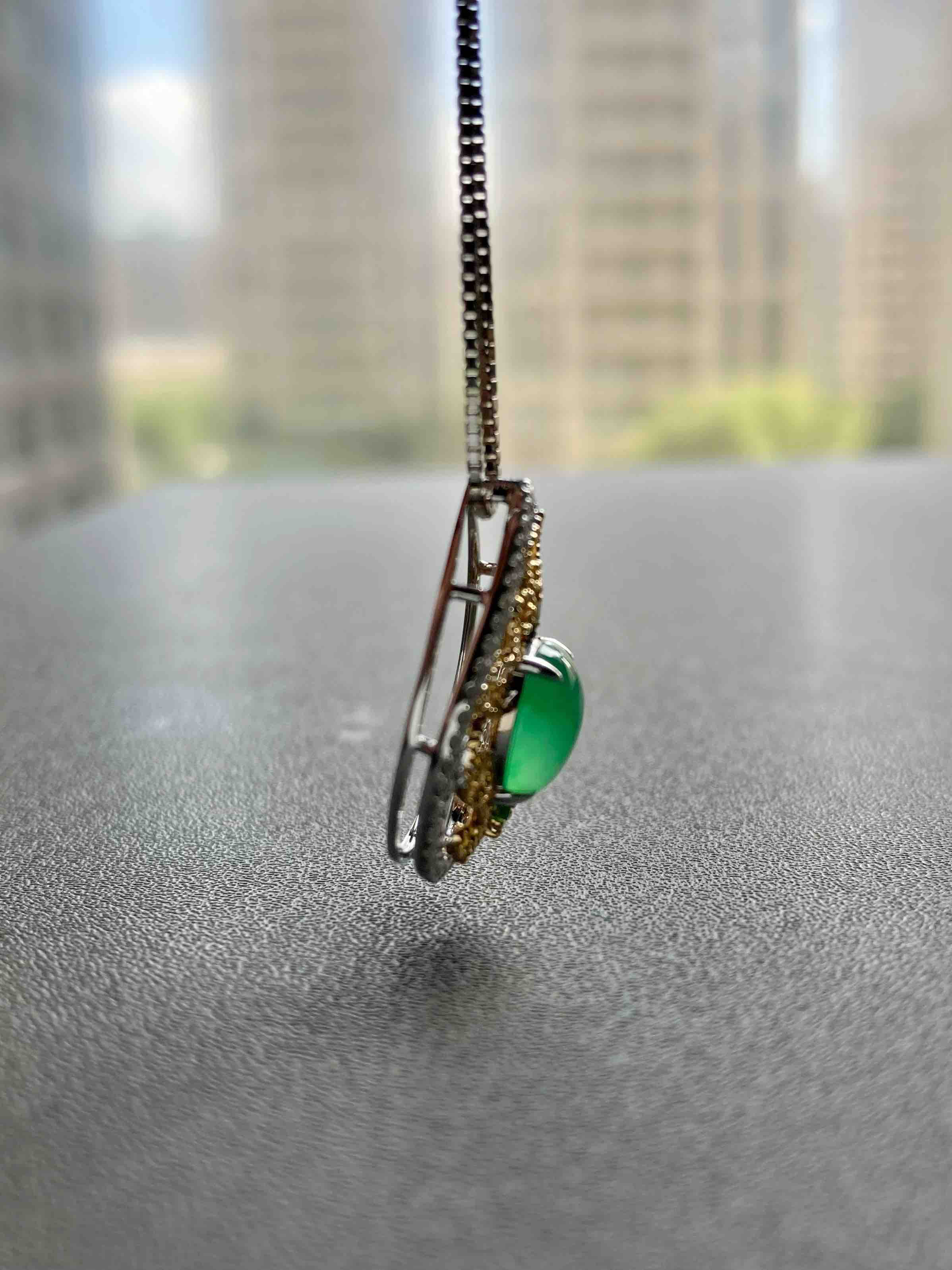 玻璃种阳绿翡翠蛋面吊坠