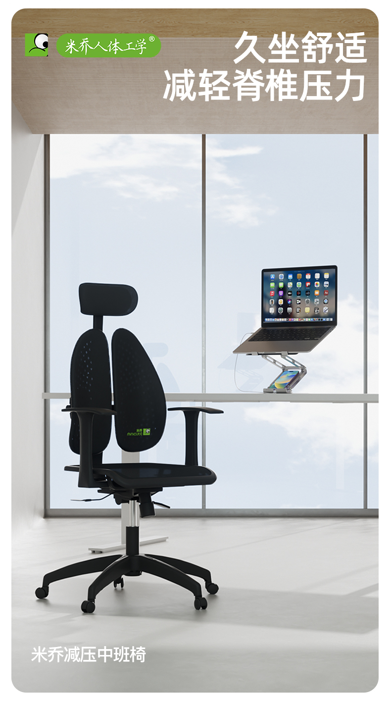 【撑腰椅】米乔人体工学双背椅家用电脑椅减压老板椅可躺坐透气办公椅