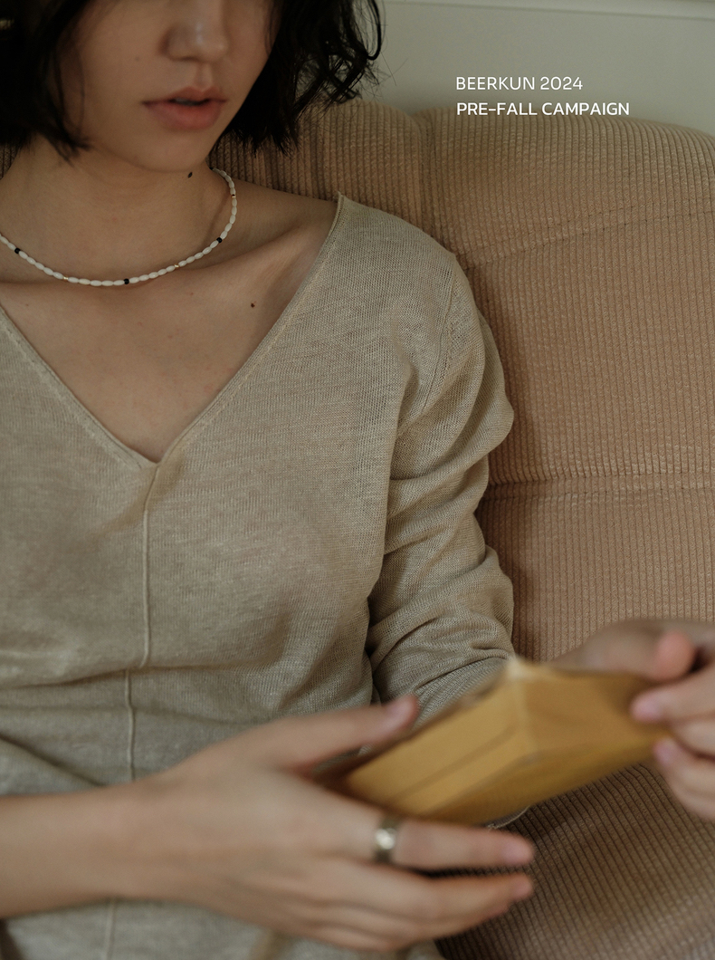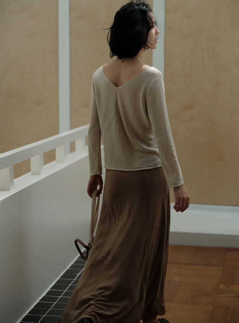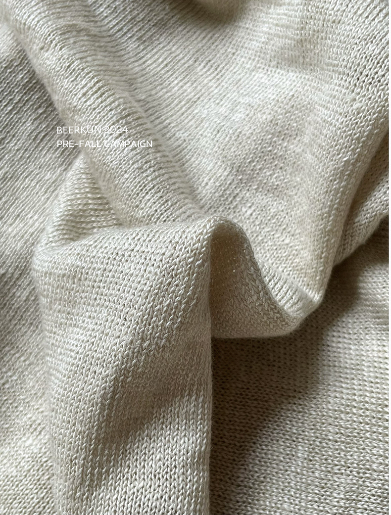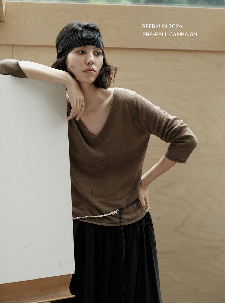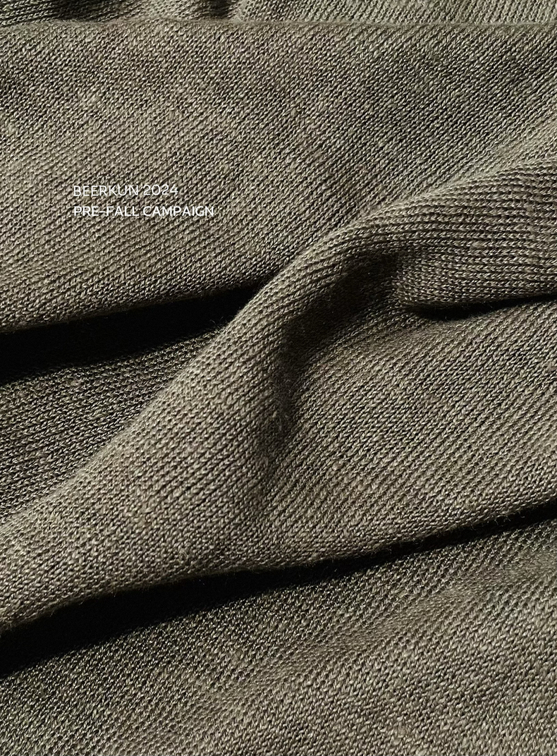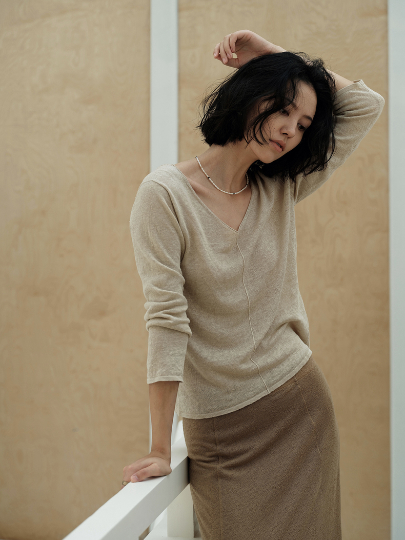[特价] 植物系双色 古典仕女 慢织细肌理亚麻 清冷双V领针织衫 100%亚麻 苔藓绿/浅麦色