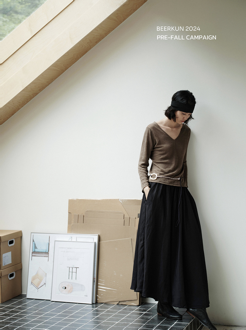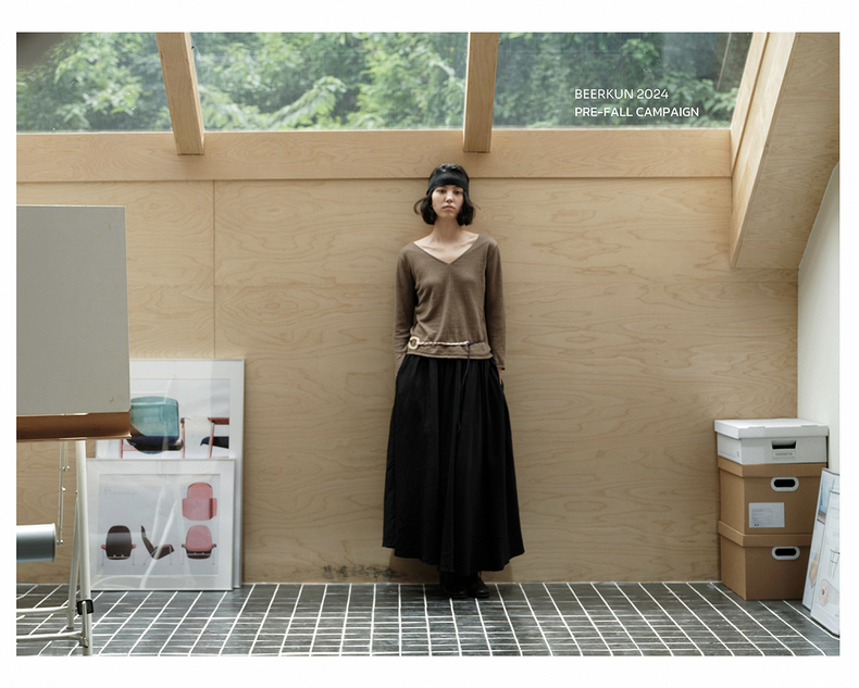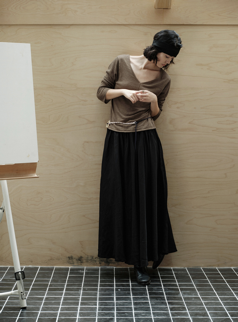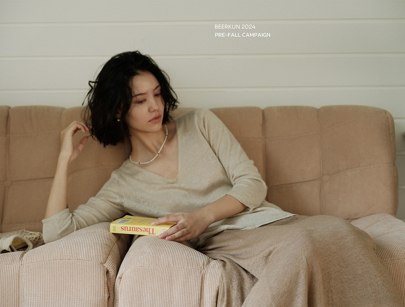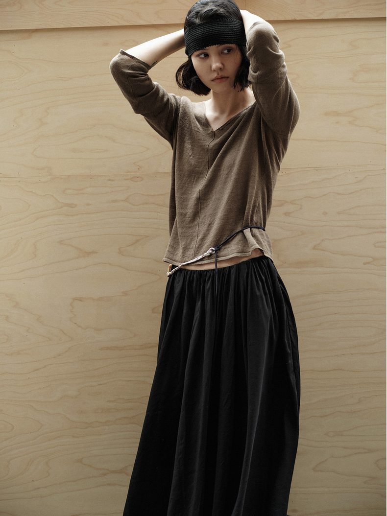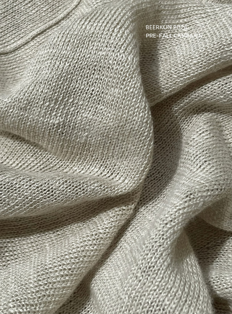 [特价] 植物系双色 古典仕女 慢织细肌理亚麻 清冷双V领针织衫 100%亚麻 苔藓绿/浅麦色