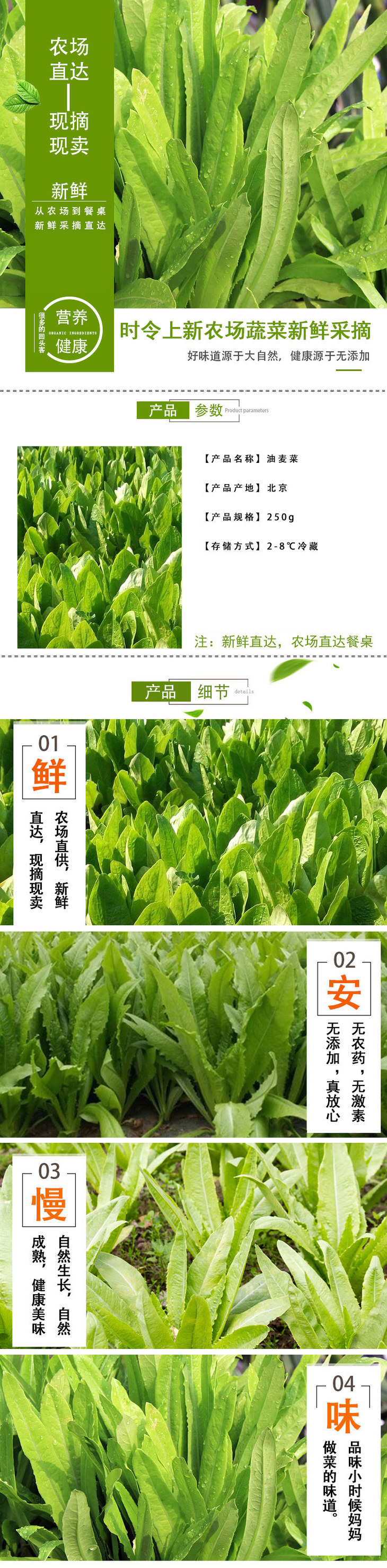 彩虹雨 新鲜有机蔬菜 油麦菜250g 欧盟认证京津冀满百包邮