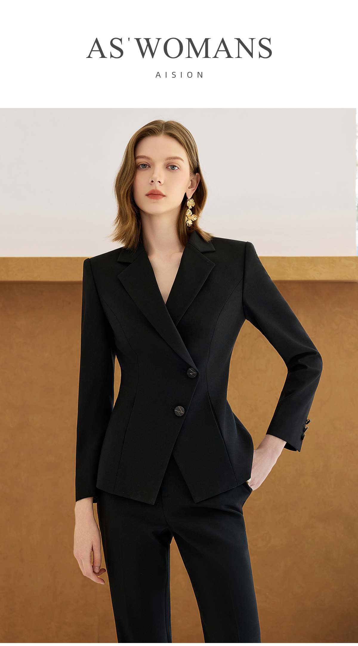 艾尚臣黑色西装套装女秋正式场合端庄套装轻职场通勤穿搭西服外套