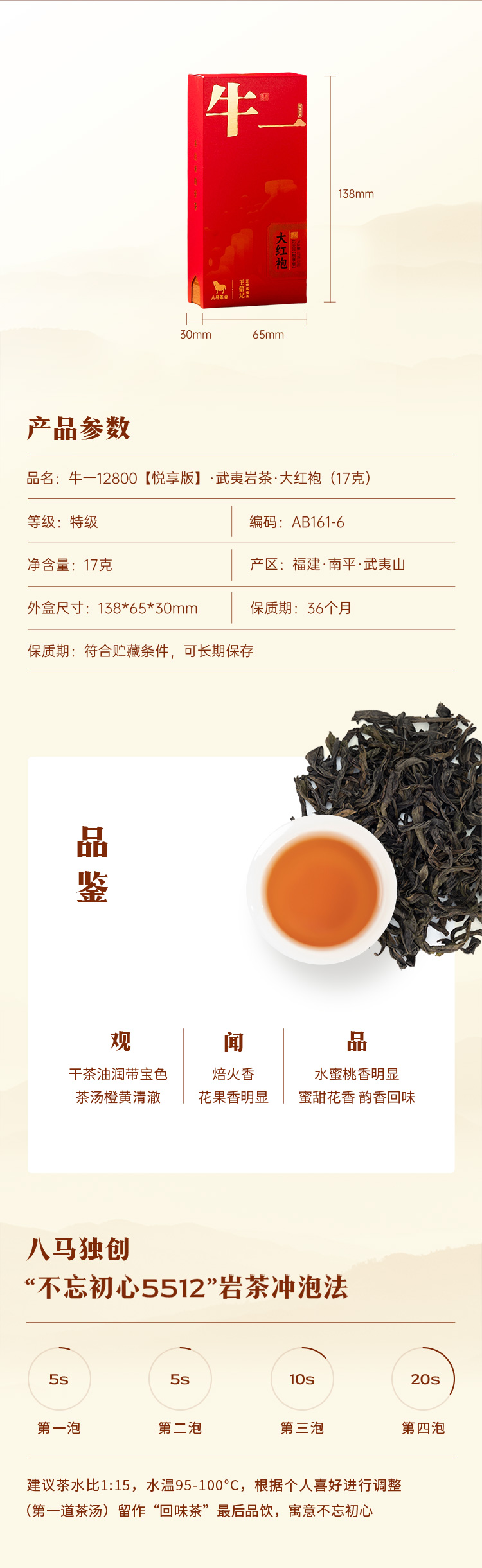 八马茶业|牛一12800【悦享版】·武夷岩茶·大红袍(17克)