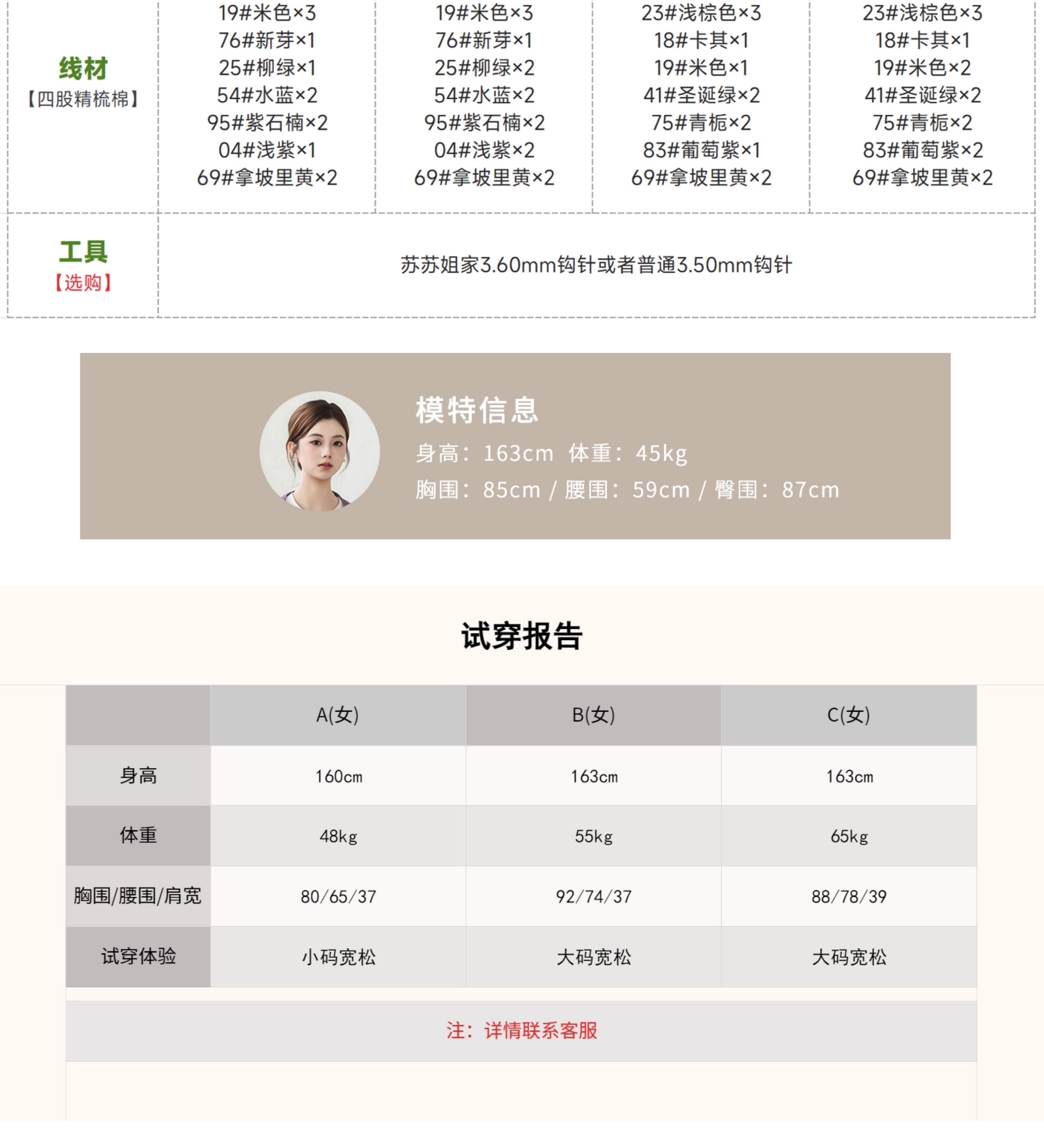 苏苏姐家花屿上衣手工diy钩针编织4股牛奶棉毛线团材料包