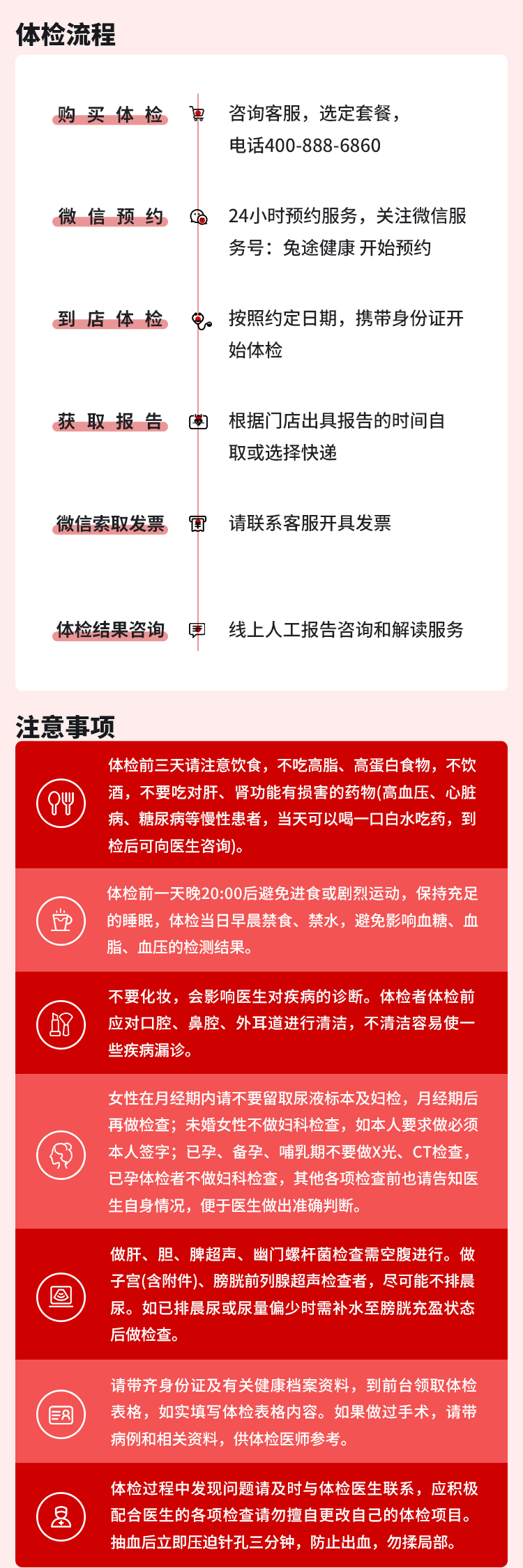 兔途通过互联网一键办理北京各类体检业务!解决百姓去医院办事检查过程繁琐、等候时间过长等实际问题。除了到医院检查,其他预约、填表、登记、缴费、查询、甚至寄送报告…..均可通过兔途在线网络办理!