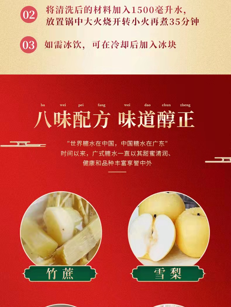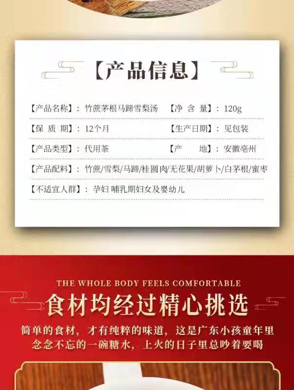 新品 竹蔗茅根雪梨马蹄水 原料组合120克/包