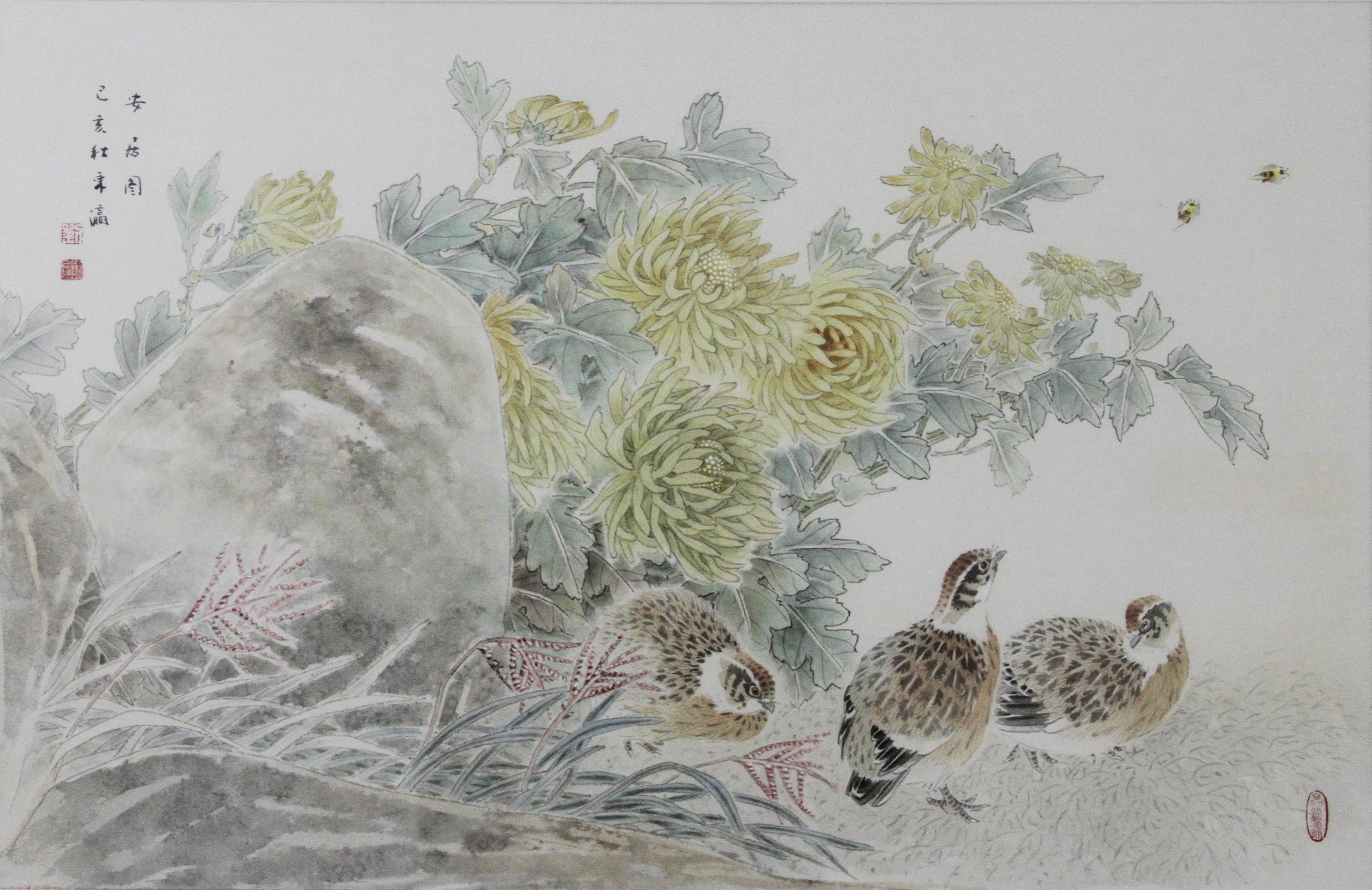 刘东瀛 1938年出生,女,祖籍辽宁省普兰店。1955年考入东北美专附属中等美术学校,1959年升入鲁迅美术学院中国画系,1964年毕业。1969年于辽南农村插队落户,1981年调回母校任教,擅长中国画,刘东瀛的工笔花鸟画,兼工带写,传统艺术功底深厚,生活气息浓郁,创新意识寄寓在朴实的语言之中。主要职务,鲁迅美术学院教授,中国画系硕士研究生导师,中国美术家协会会员,辽宁中国画研究会理事。