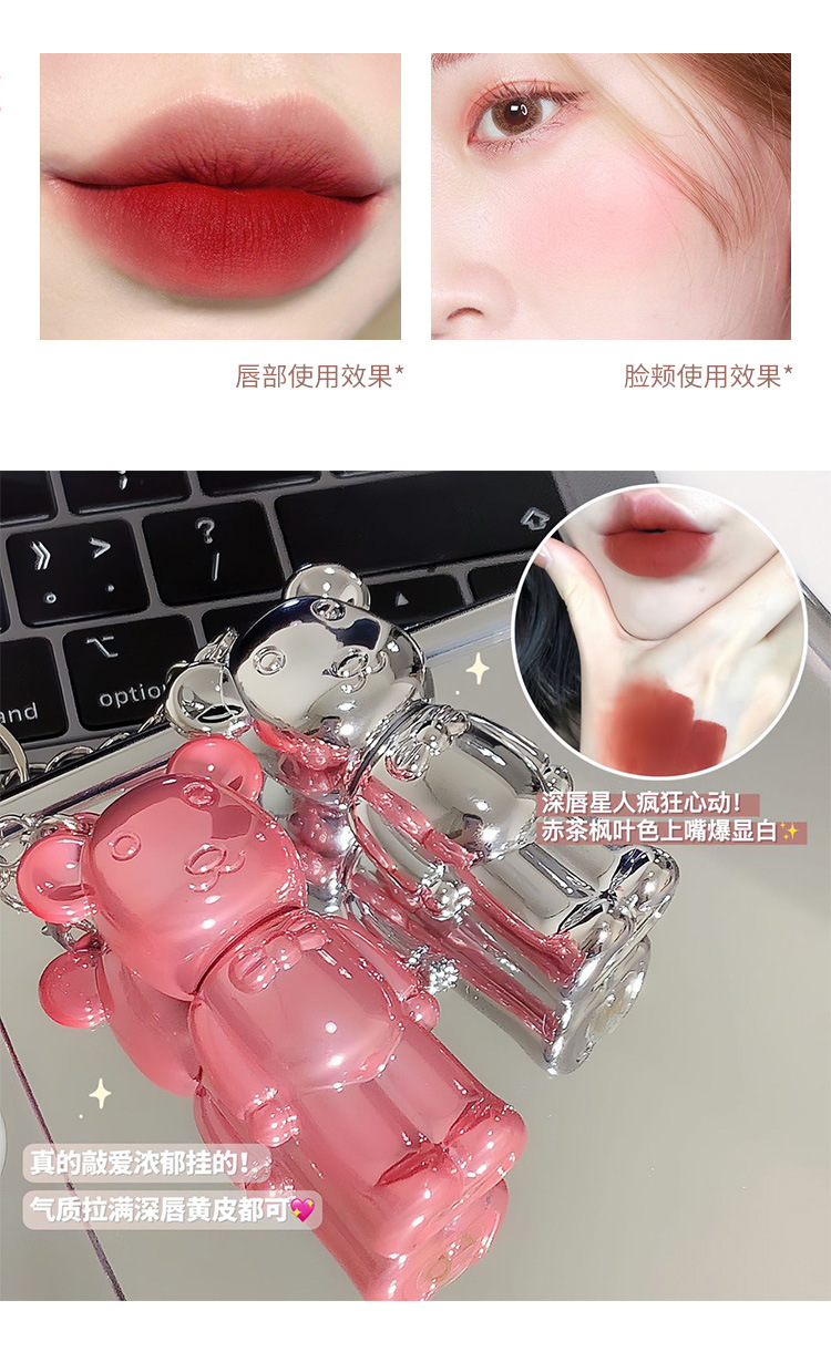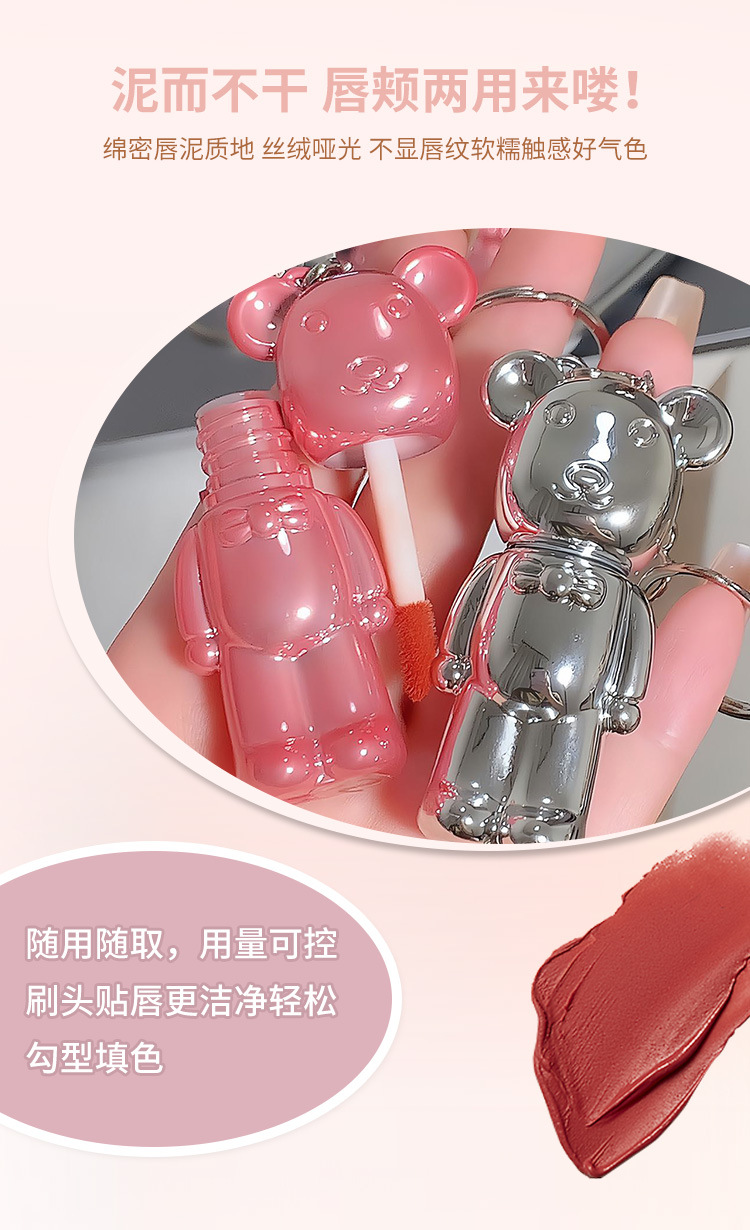 <有书独家>【高颜值!钥匙扣唇泥】小熊唇泥哑光雾感丝绒唇釉口红钥匙扣挂件学生党唇膏彩妆女生,一秒抚平唇纹,上唇亲肤不粘腻。